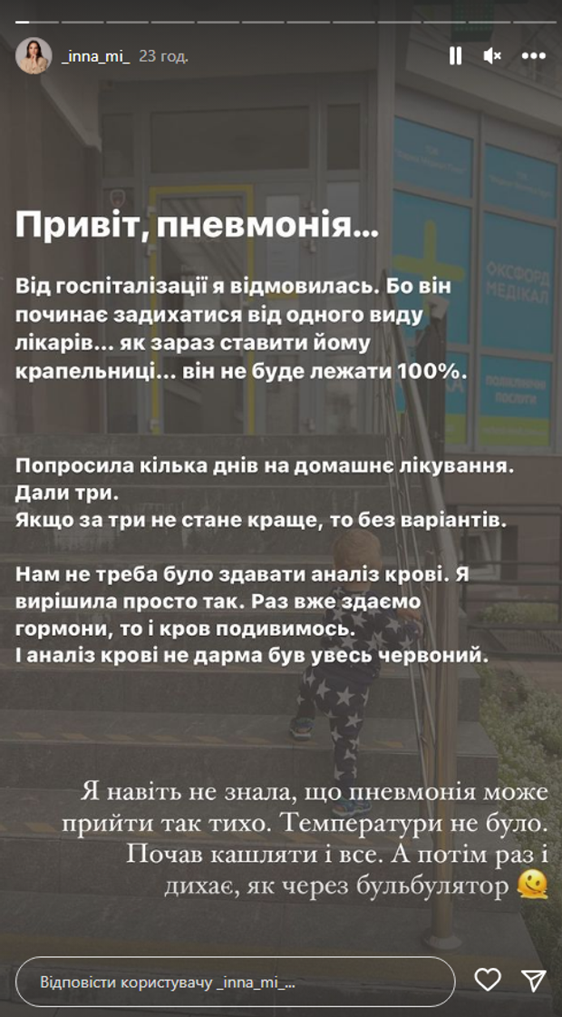 Приемный сын Мирошниченков заболел / Скриншот с инстаграмм-сторис