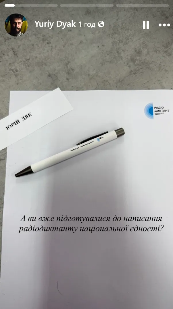 Кроме того, к написанию радиодиктанта присоединился украинский актер Юрий Дяк, который снимался в сериале "Морская полиция. Черноморск". Об этом он рассказал на своей странице в фейсбуке.