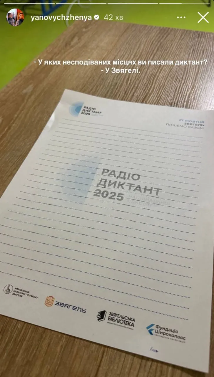 Женя Янович писал радиодиктант в Звягеле / Скриншот из инстаграм-сторис