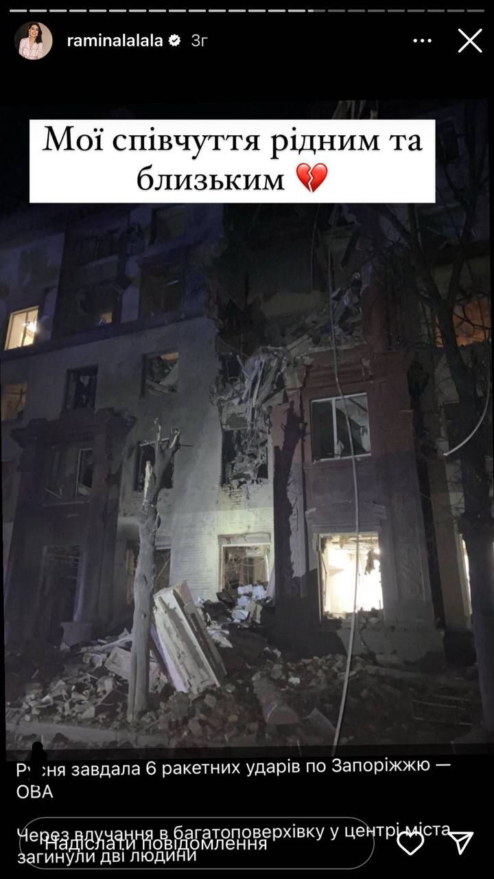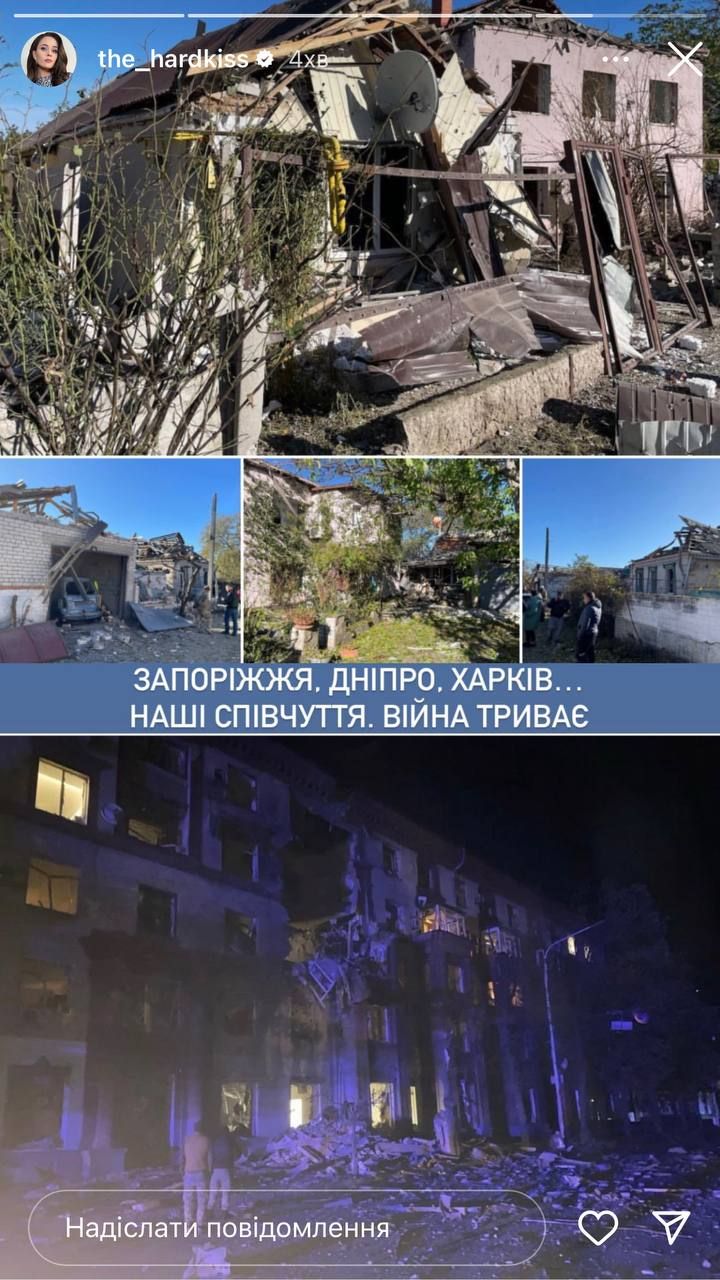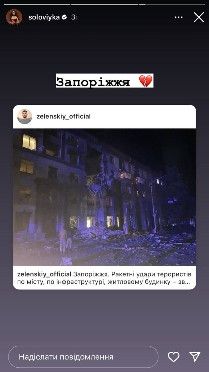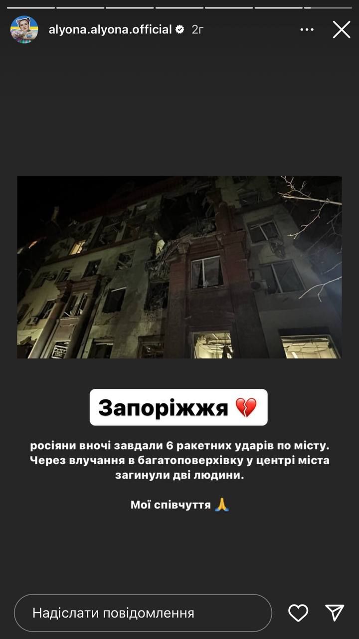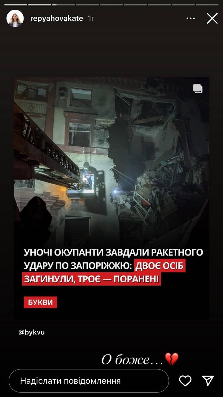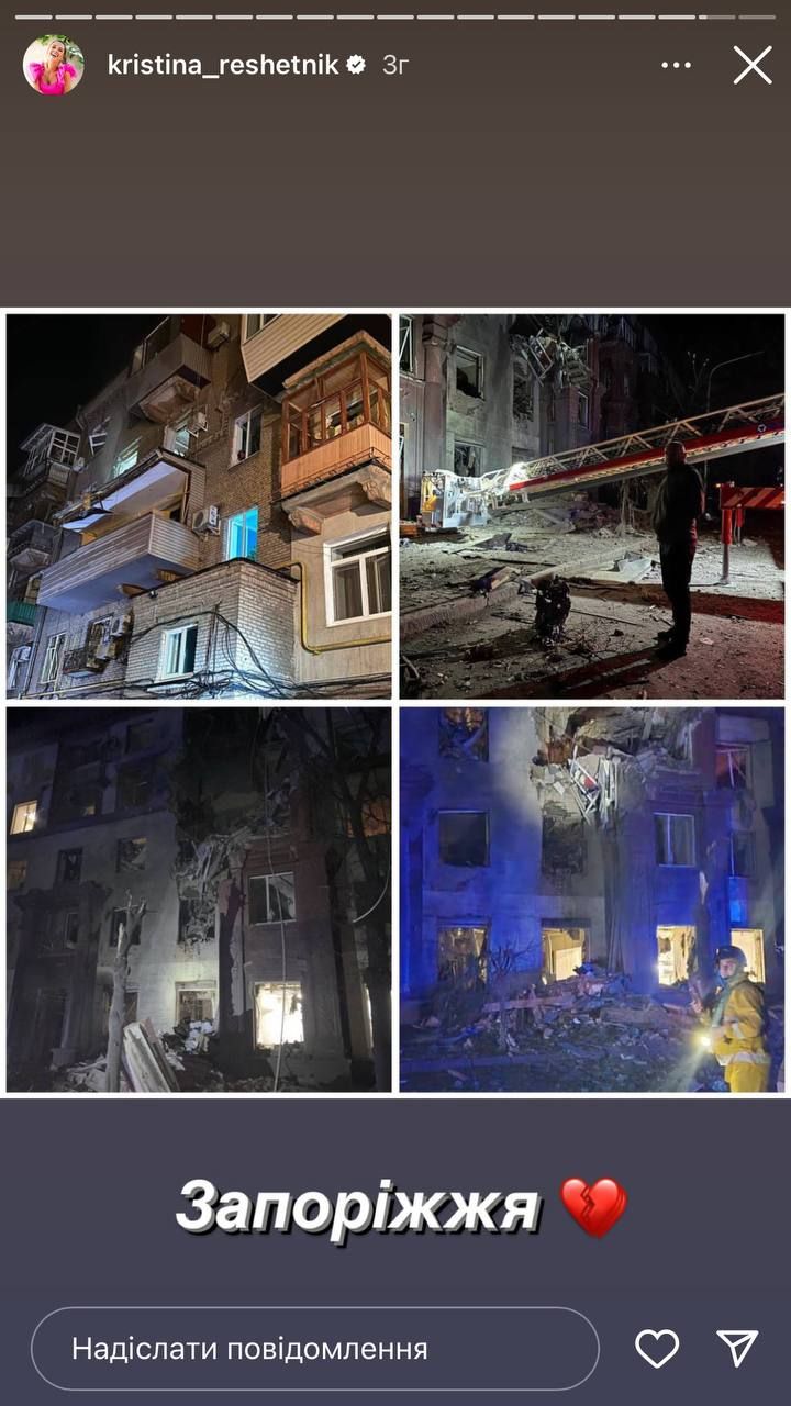 Как другие звезды реагируют на ракетный обстрел Запорожья / Скриншоты с инстаграмм-сторис