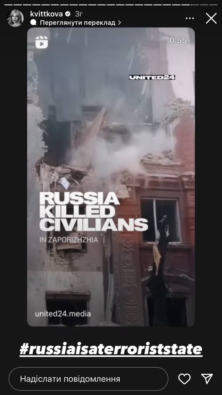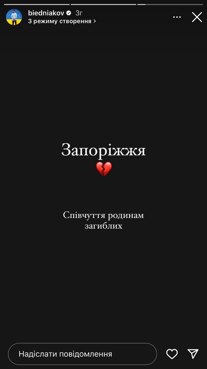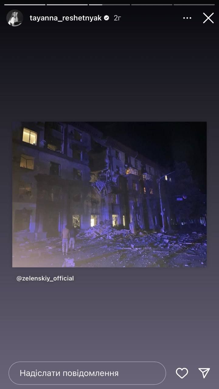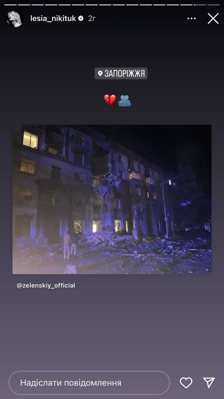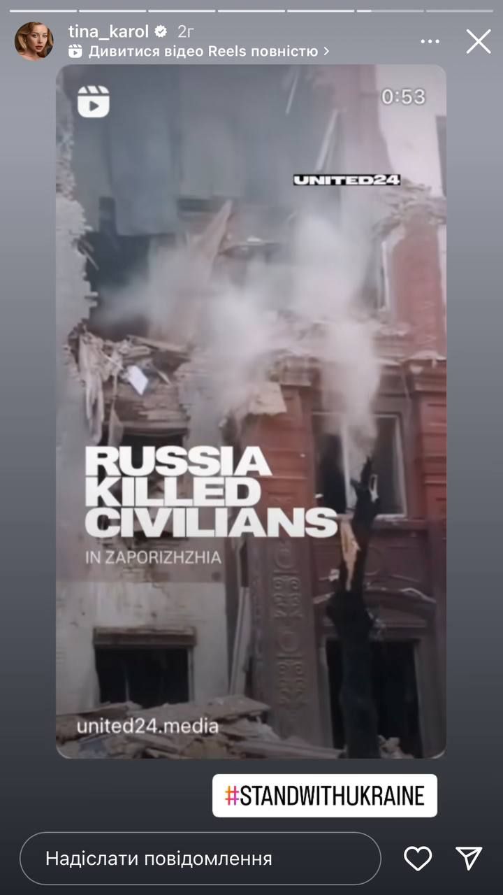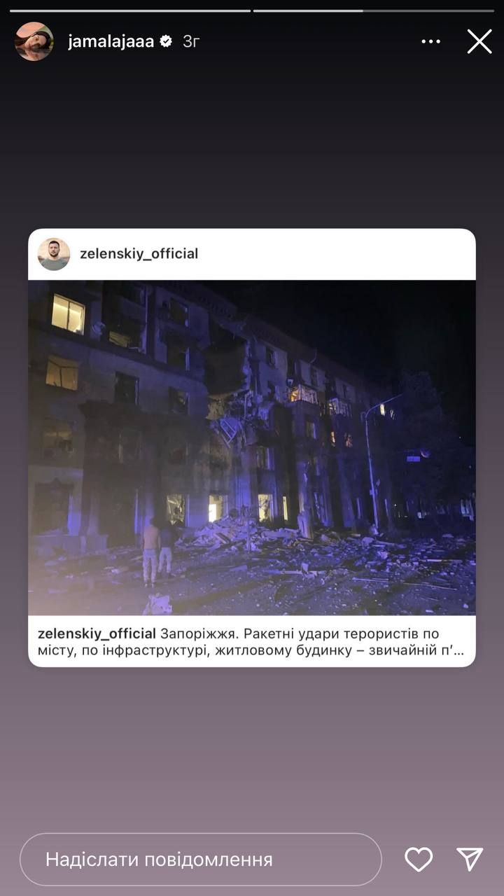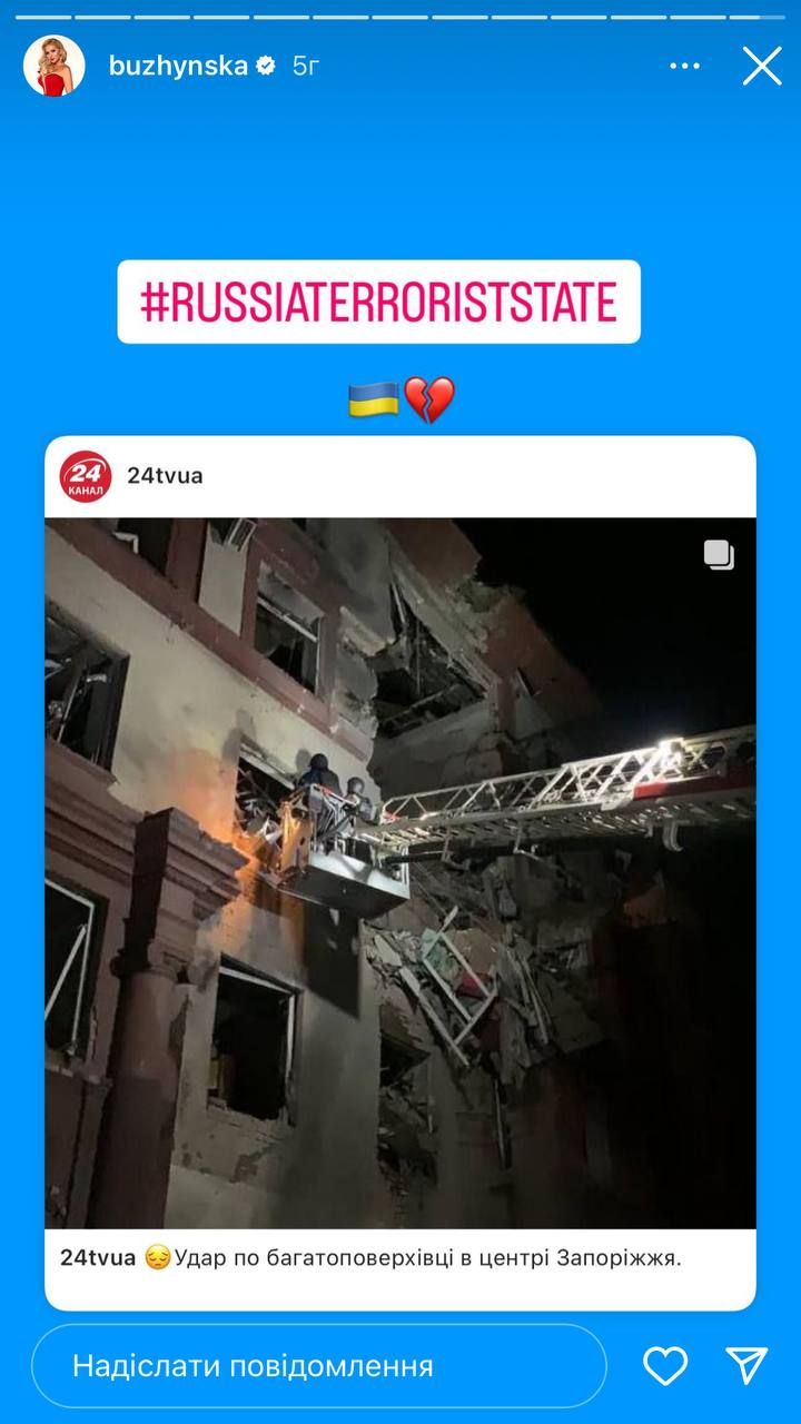 Как другие звезды реагируют на ракетный обстрел Запорожья / Скриншоты с инстаграмм-сторис