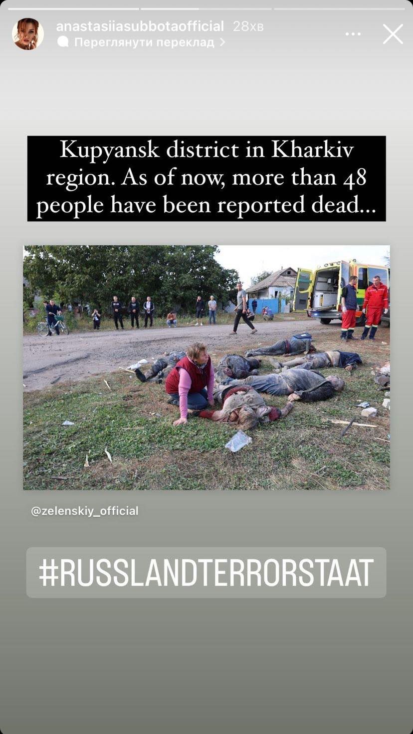 Анна Саливанчук отреагировала на атаку россиян по Харьковской области/ Скриншот с инстаграмм-сторис
