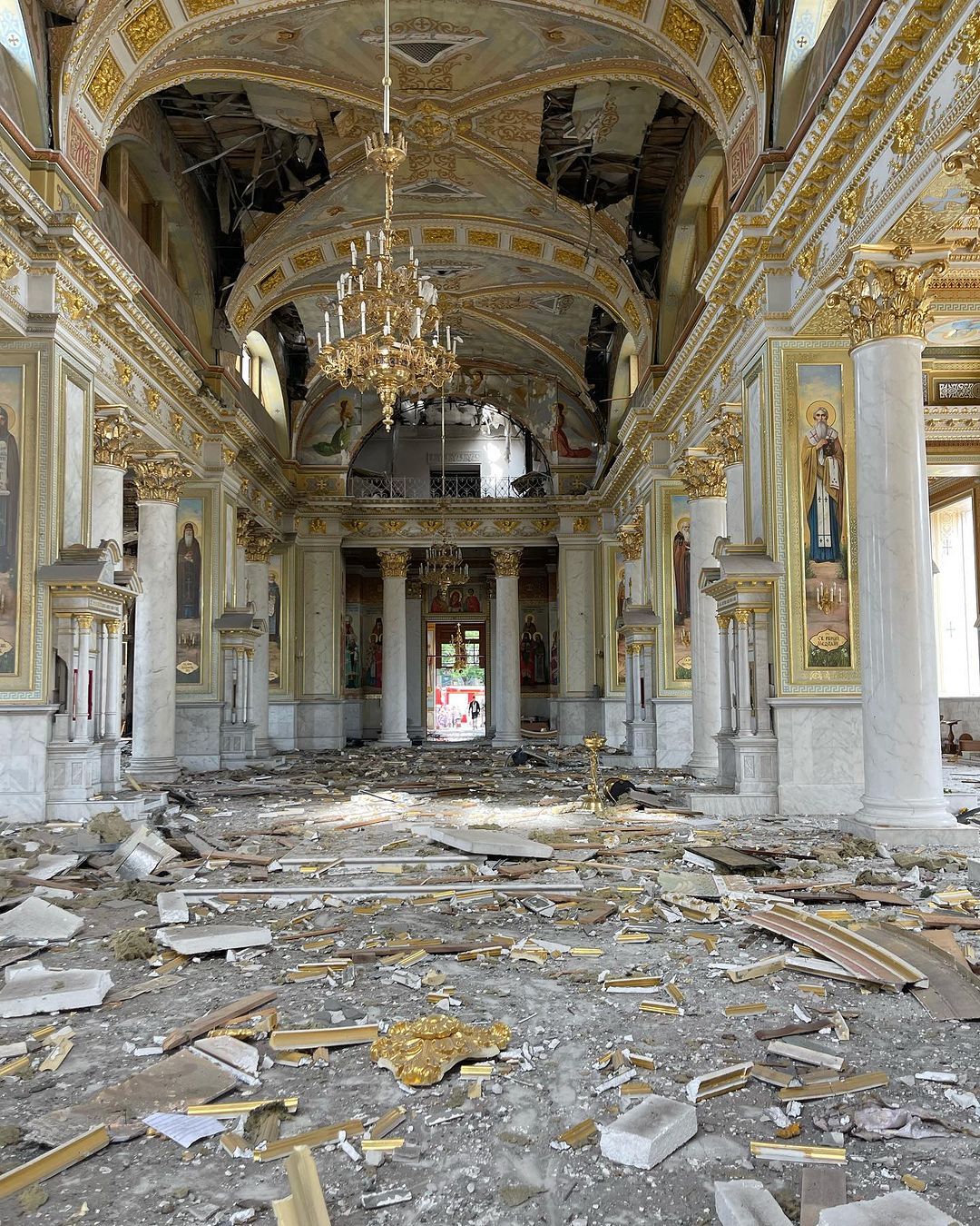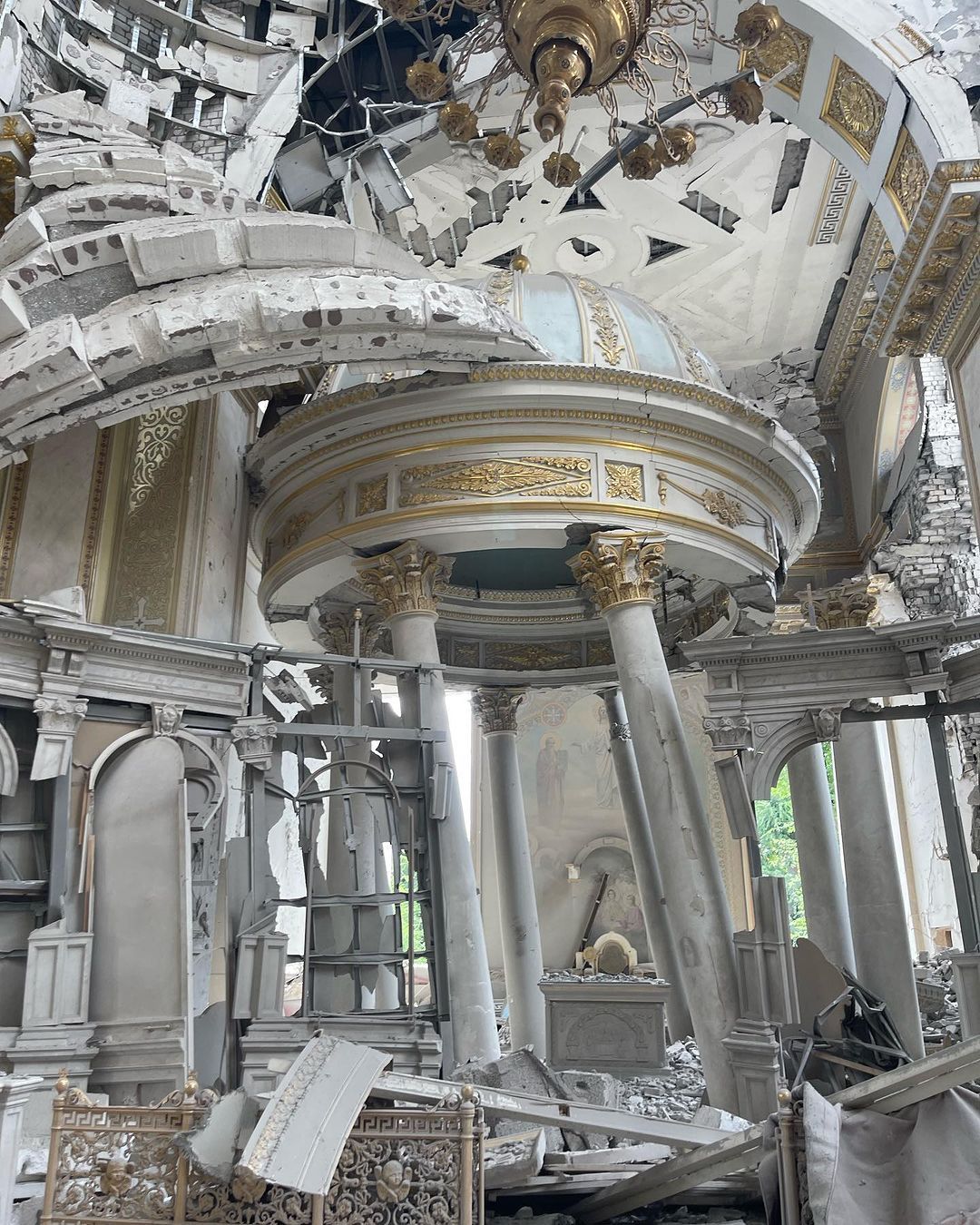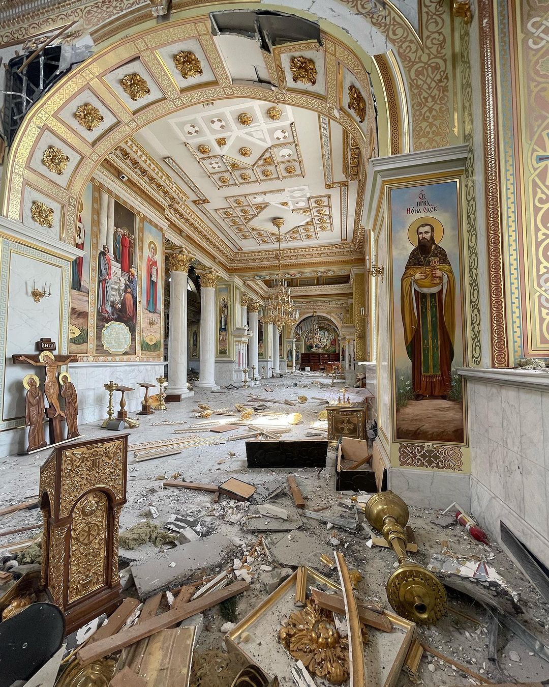 Стало известно о повреждении одной из главных достопримечательностей города – Спасо-Преображенский кафедральный собор. Там возник пожар, поврежденный алтарь и храм в целом. Удалось извлечь из-под завалов Касперовскую икону Божией Матери, которая является покровительницей Одессы. Это главная церковь УПЦ МП в Одессе.