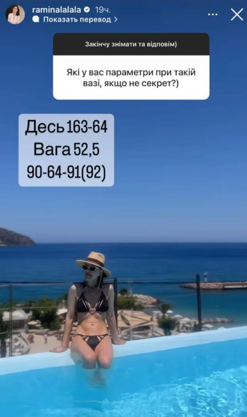 Раньше Рамина тоже показывала видео в купальнике. Но она его запостила, чтобы привлечь внимание в Международный день борьбы с сексуальным насилием, связанным с войной. Блогерша предоставила контакты, куда обращаться в случае такой беды.