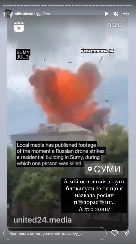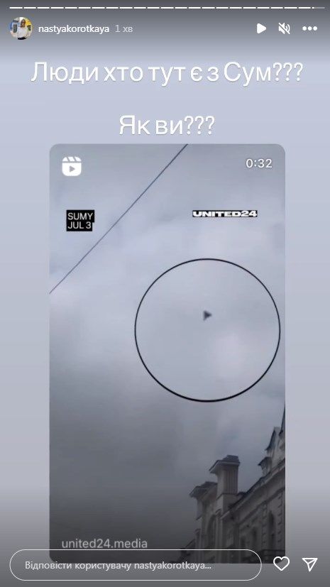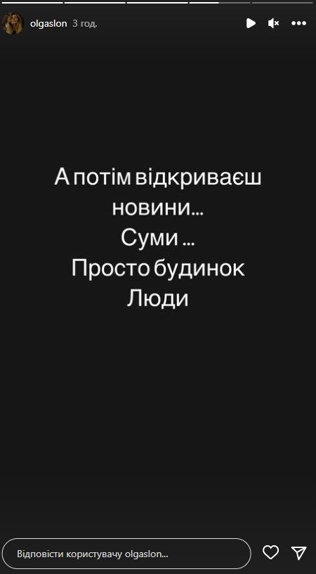 Злата Огневич отреагировала на обстрел Сум / Скриншот с инстаграм-сторис