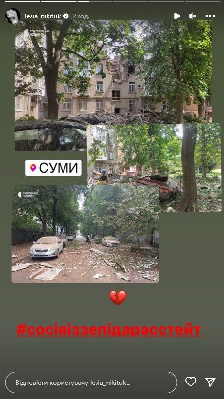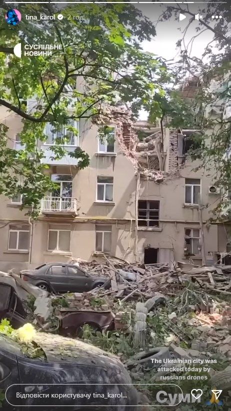 Ведущий в инстаграмме поделился фотографией следствий попадания в Сумах.