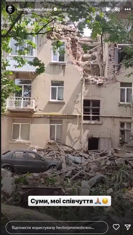 Андрей Бедняков отреагировал на обстрел Сум / Скриншот с инстаграмм-сторис