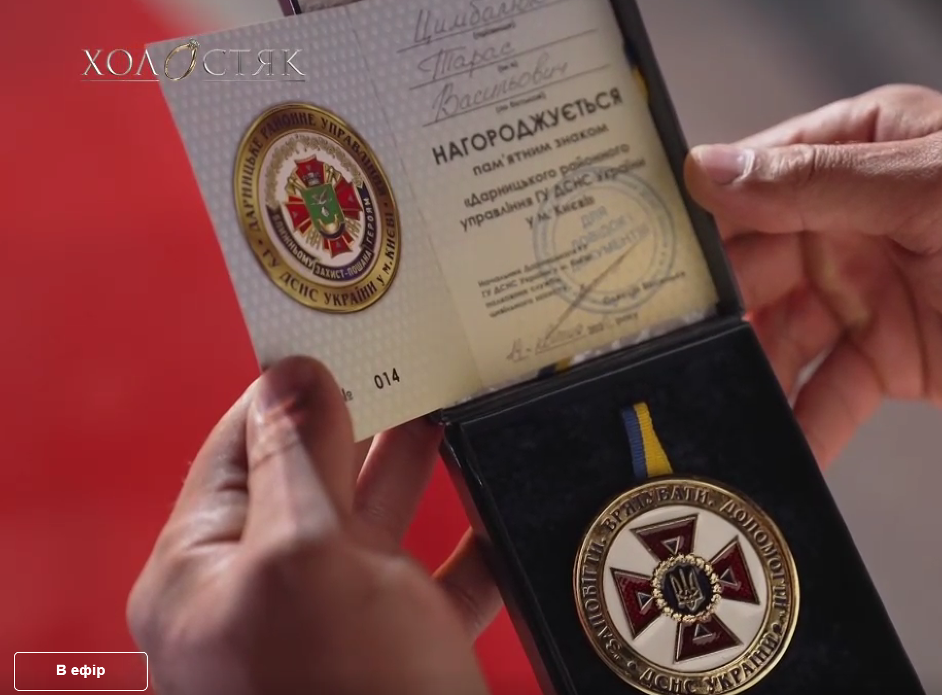 - Наталья вручила Цимбалюку памятный знак за правдивое изображение роли спасателя в сериале "Любовь и пламя".
