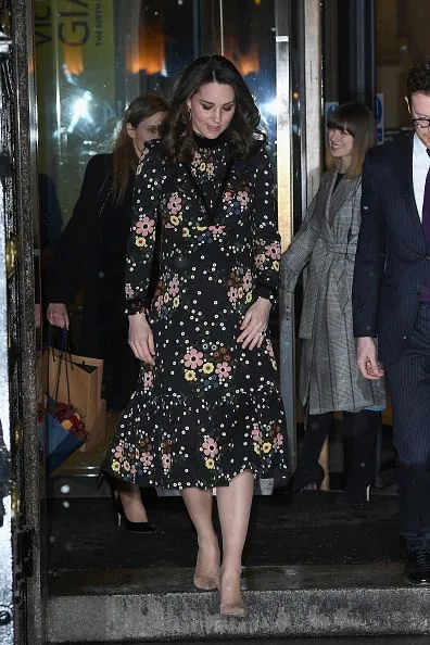 Очаровательная Кейт Миддлтон посетила Национальную портретную галерею, где происходило открытие выставки. Герцогиня Кембриджская надела привычное для себя платье с цветочным принтом. Образ супруга принца Уильяма завершила светлыми туфлями на каблуках и клатчем такого же цвета. Однако беременная Кейт Миддлтон несколько смутила таким "луком" британцев, ведь в снежную погоду она прошлась по улице Лондона в легком наряде.