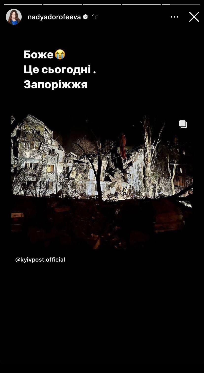 Реакция звезд на ракетный удар по Запорожью / Скриншот с их инстаграмм-сторис