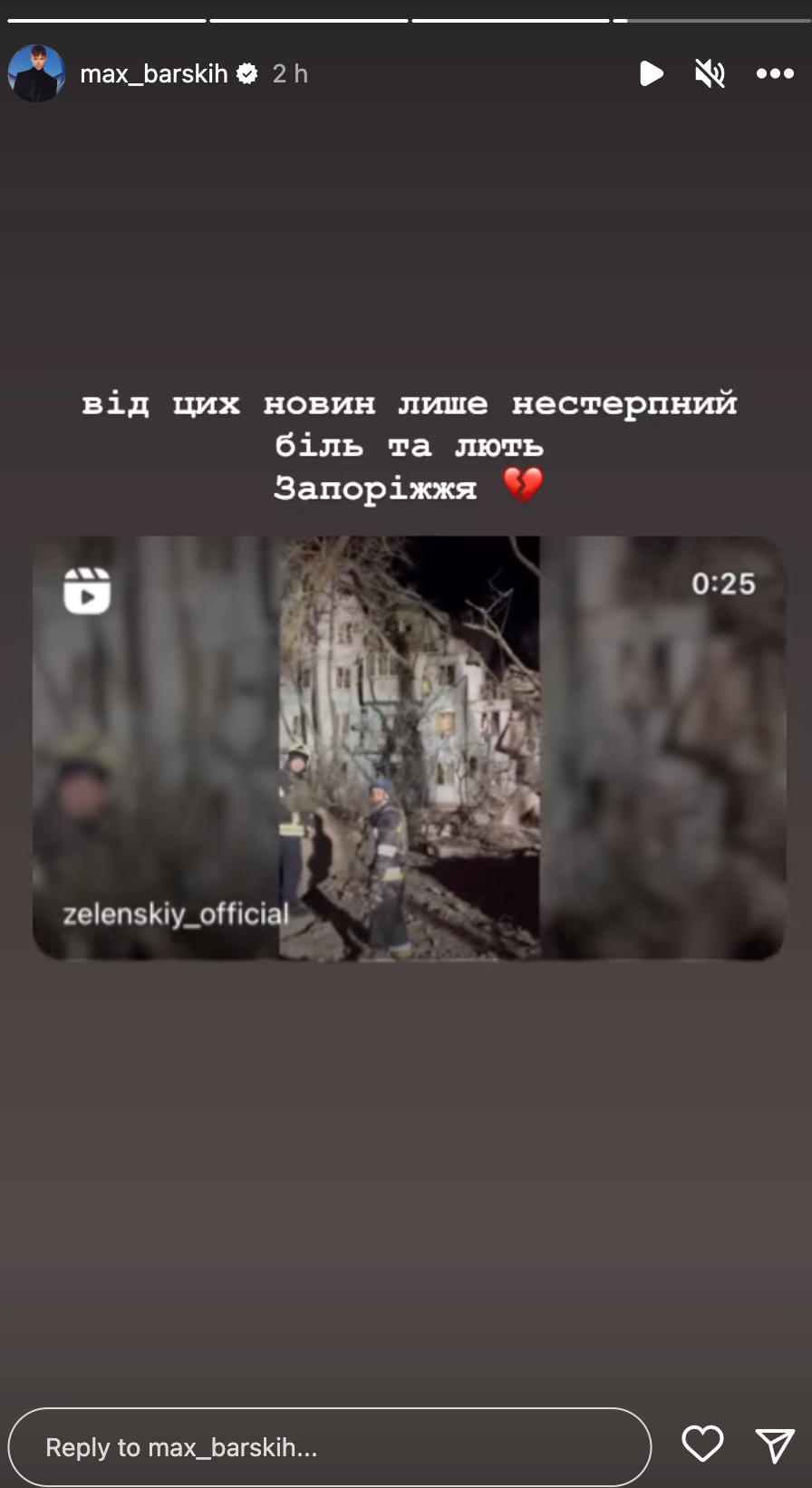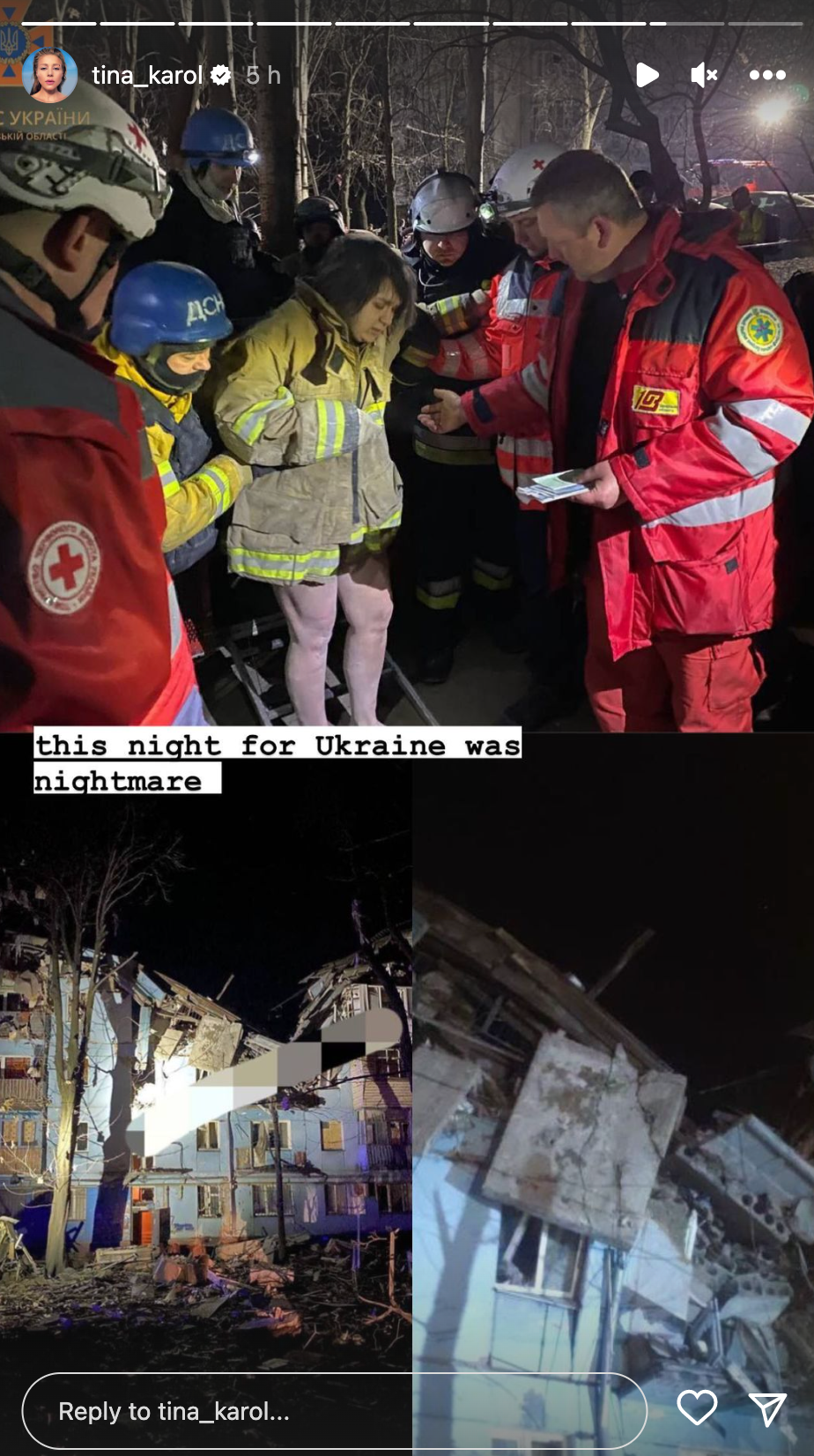 В своих Instagram-Stories украинские артисты публикуют слова сострадания и фото по трагедии, а также осуждают действия страны-агрессора.