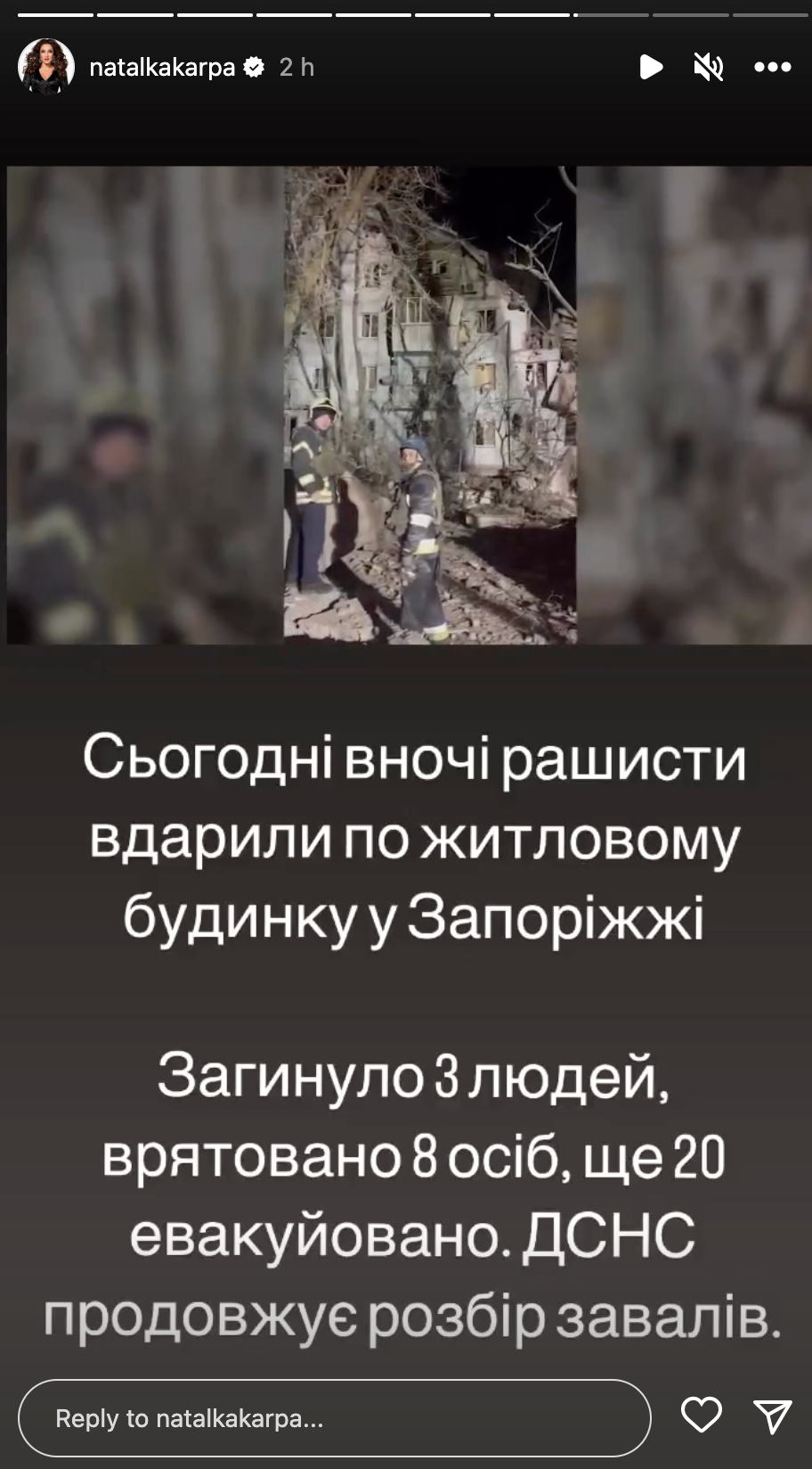 Как звезды реагируют на удар по дому в Запорожье