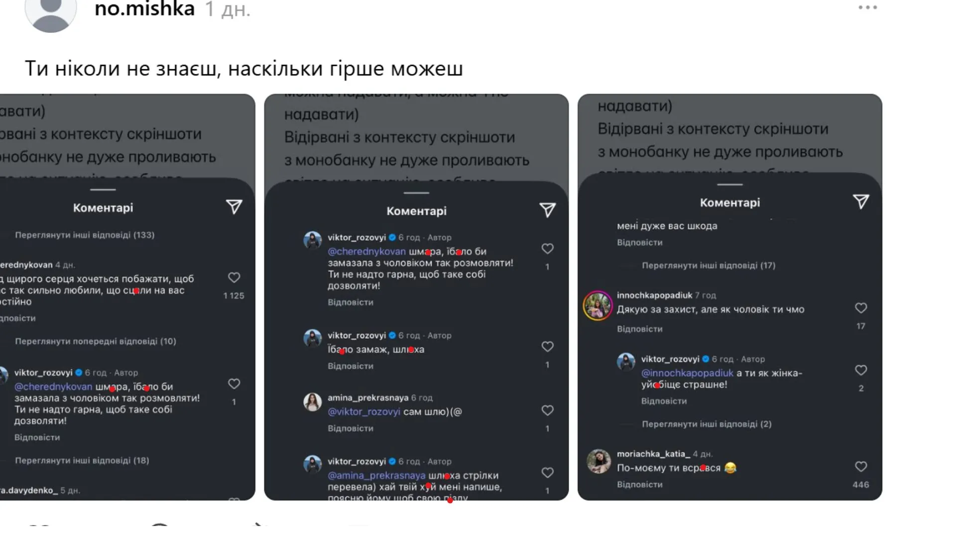 После серии откровенных интервью, которые дали оба бывших партнёра, появилась новая волна критики в адрес Розового. Причиной скандала стали резкие ответы Виктора в соцсетях. Сообщает Showbiz24 со ссылкой на страницу пользователя с ником no.mishka в Threads.