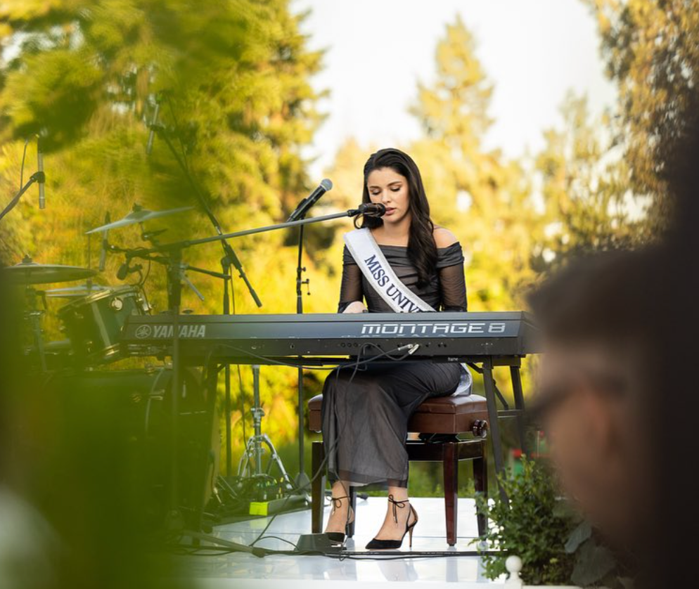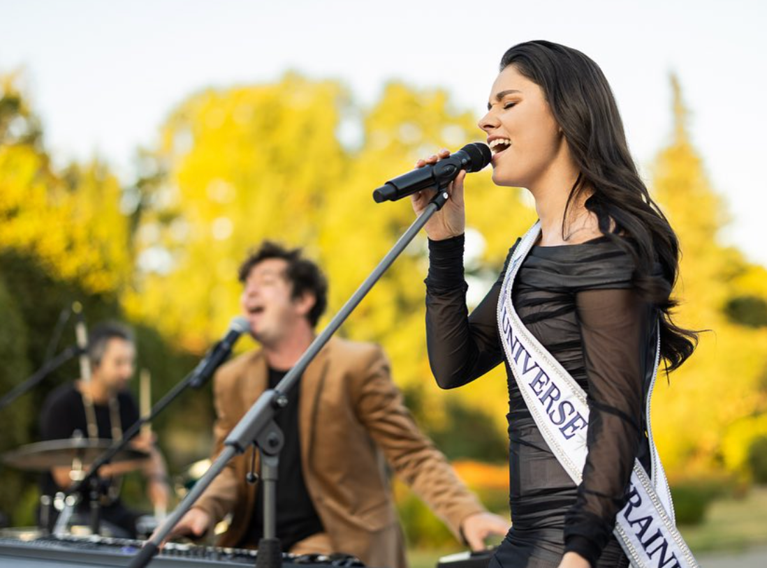 - На странице "Мисс Украина Вселенная" указано, что Ангелина – певица, автор песен и музыкант, которая "пишет и исполняет песни на темы мира, экологии и любви".