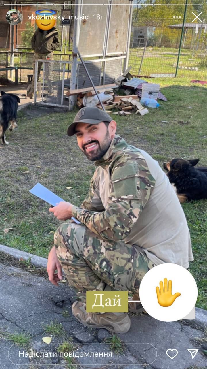 Эти снимки он распространил в своих инстаграмм-сторис. Также недавно Козловский умилил поклонников фото, как в военной форме играл с собачкой.