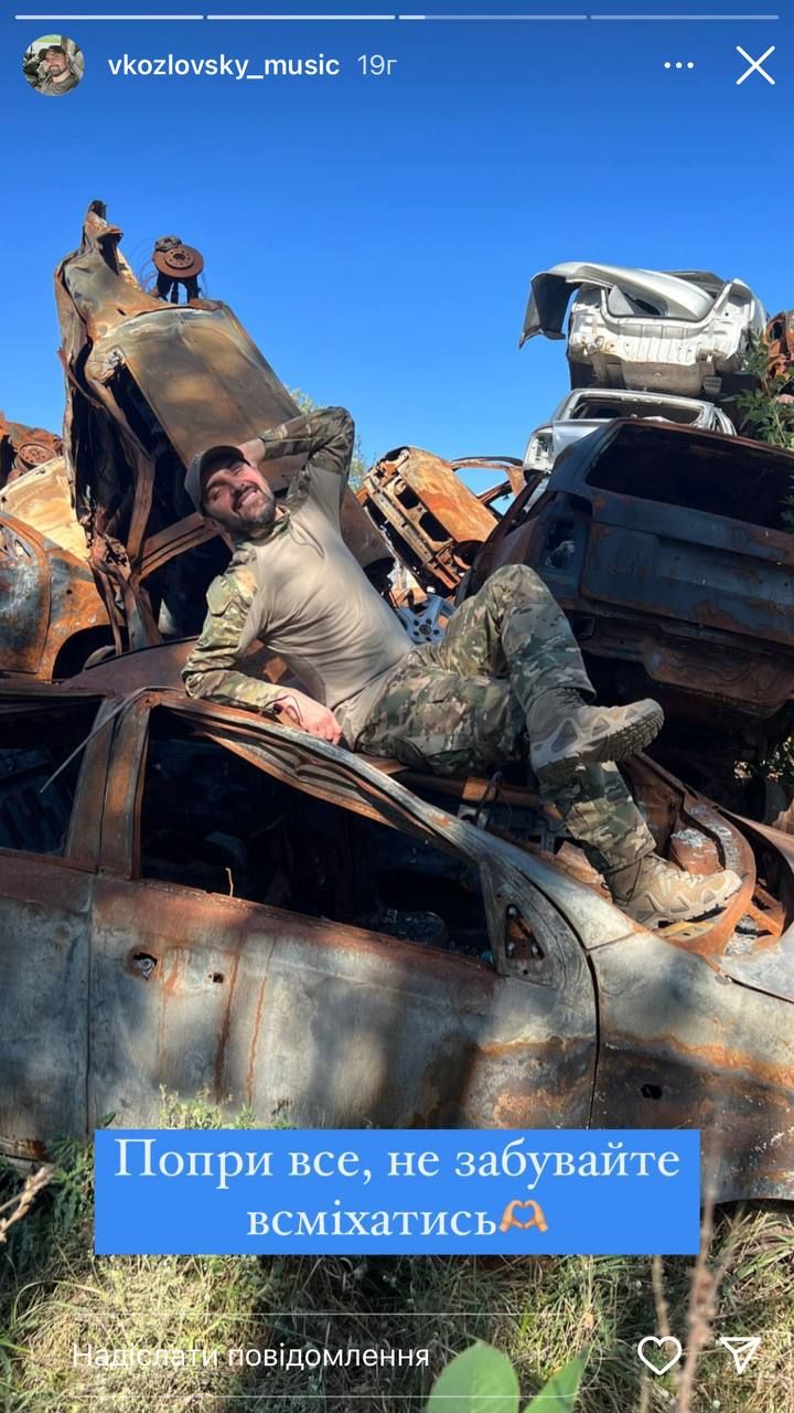 - На днях артиста посвятили в артиллеристы. Виталий опубликовал видео, где видно, как он выстрелил из артиллерии. После этого певец прошел особое посвящение. Побратимы сначала дали ему понюхать гильзу после выстрела, затем помазали порохом лицо Виталия. В конце военные еще и ударили Козловского гильзой по ягодицам.