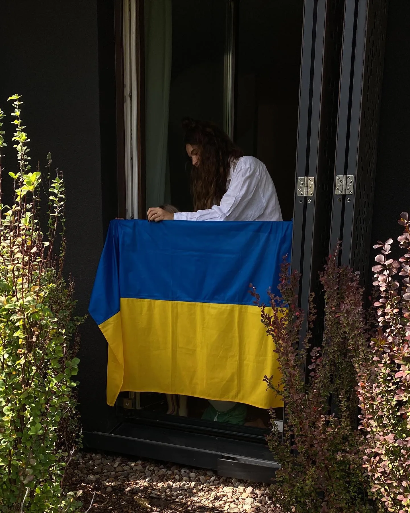 В праздничный день певец в инстаграмме поделился редкими фотографиями со своей избранницей Дашей Кацуриной. На фото девушка вывешивала флаг Украины.