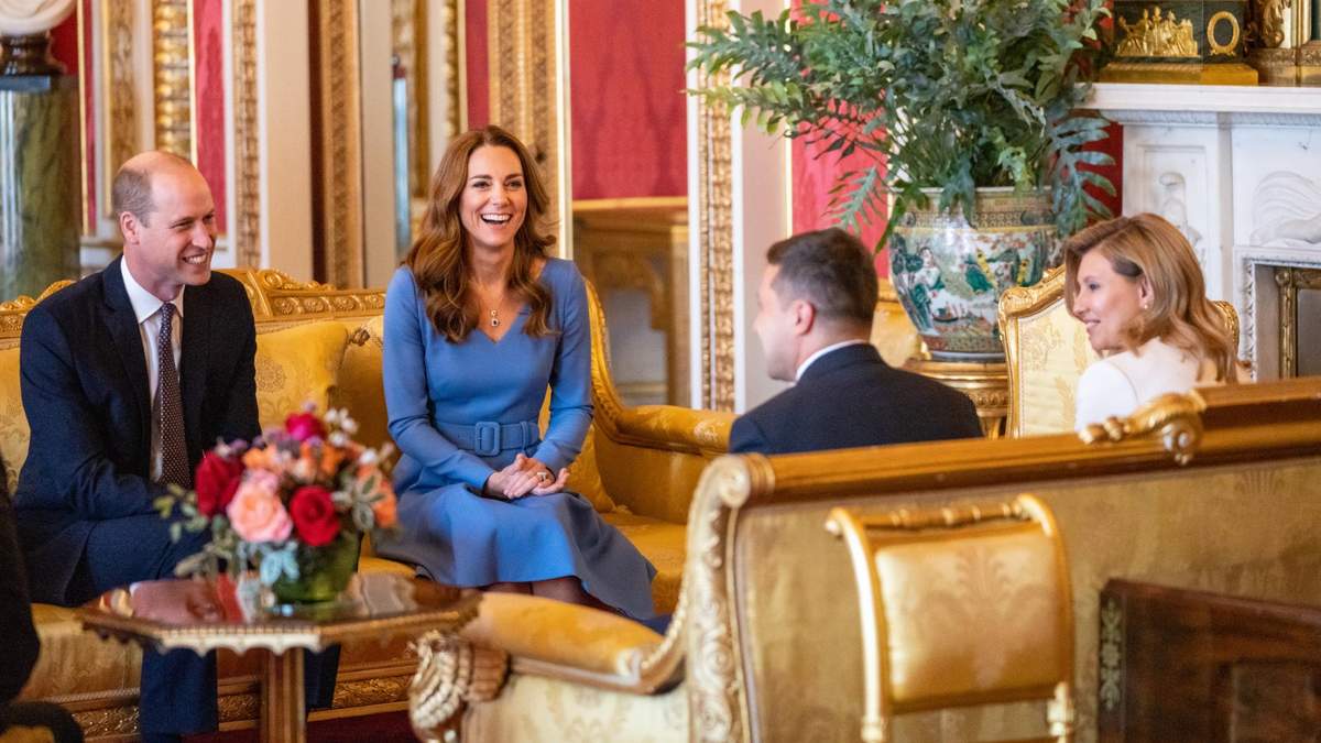 Аудиенция Зеленских состоялась в Букингемском дворце. Там герцоги Кембриджские встретились с украинским президентом и его супругой. Об этом стало известно на твиттер-странице представителей Кейт Миддлтон и принца Уильяма. Стоит добавить, что это первая встреча королевских потомков с президентом Украины и его женой, а также первая аудиенция, которую принц Уильям и его жена дали во дворце со времени начала карантина. Известно, что на время своего отсутствия в Букингемском дворце королева Елизавета II делегировала внуку и его жене свои полномочия, поэтому именно они приняли Владимира и Елену Зеленских в роскошном тронном зале.