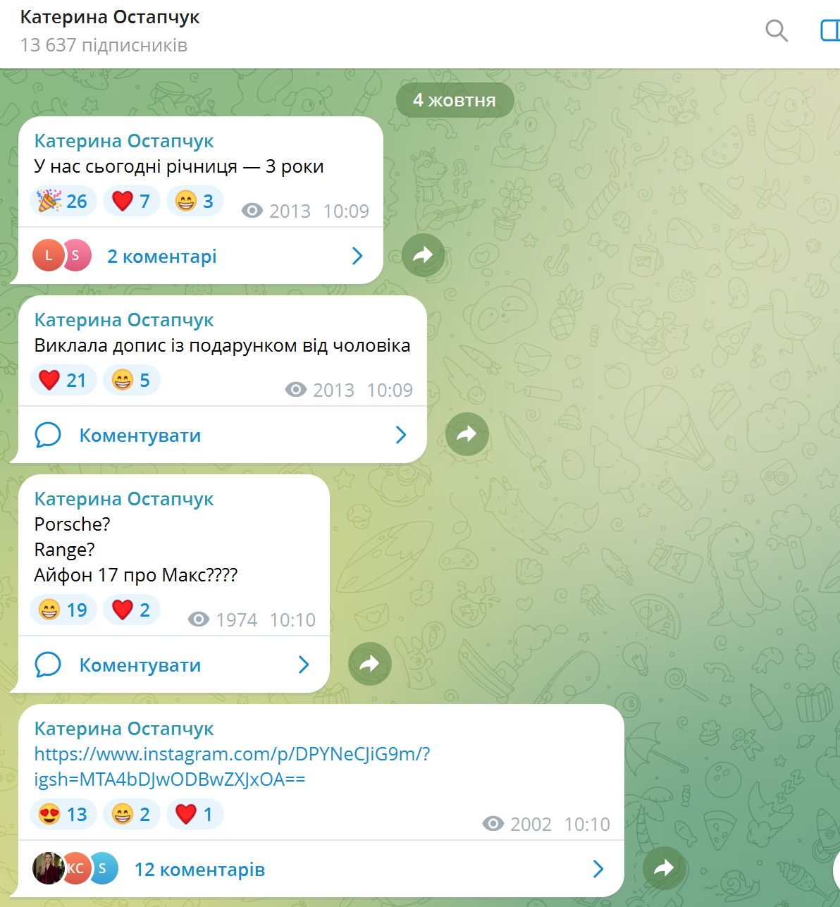 Екатерина Остапчук рассказала о подарке на 3 годовщину от мужа / Скриншот из соцсетей