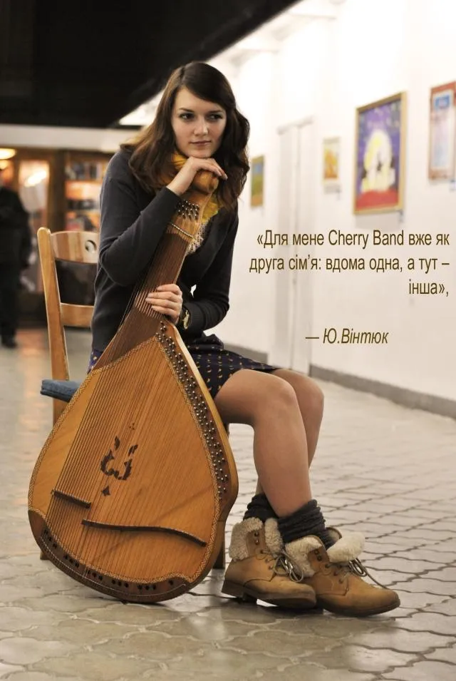 Все музыкантши Cherry Band - это участницы капеллы бандуристок «Галичанка», благодаря которой мы и познакомились. Одна из нас, Настя (Настя Войтюк, гитара в Cherry Band - «24»), однажды поэкспериментировала и сделала свою обработку народной песни «Черные черешни», - нам очень понравилась. А потом мы случайно встретились с Остапом Костюком из львовского «Этноклуба Имущества» и он предложил нам у них выступить. Правда, у «Галичанки» песни немного другого формата, вот тогда мы и решили, что стоит начать создавать что-то свое, новое, другое. Нас тогда собралось 9 музыкантов, с нами был еще перкуссионист Ярослав Залецкий, мы изучили «Черные черешни», сделали обработки еще нескольких песен и вот 12 апреля 2011 года мы собственно и дали первый концерт этой новосозданной формации ансамбля «Галичанка», если так можно сказать .