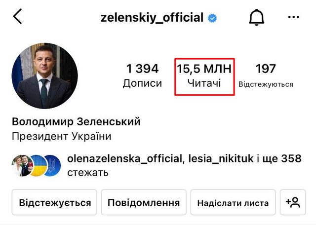 В результате Владимир Зеленский как никогда активен в своем инстаграме, информирует 24 канал. Там он публикует обращение к украинцам и мировому сообществу, а его видео ежедневно просматривают минимум два миллиона пользователей. Не удивительно, что после российского вторжения количество его фолловеров выросло в 15 раз – 15,5 миллиона.