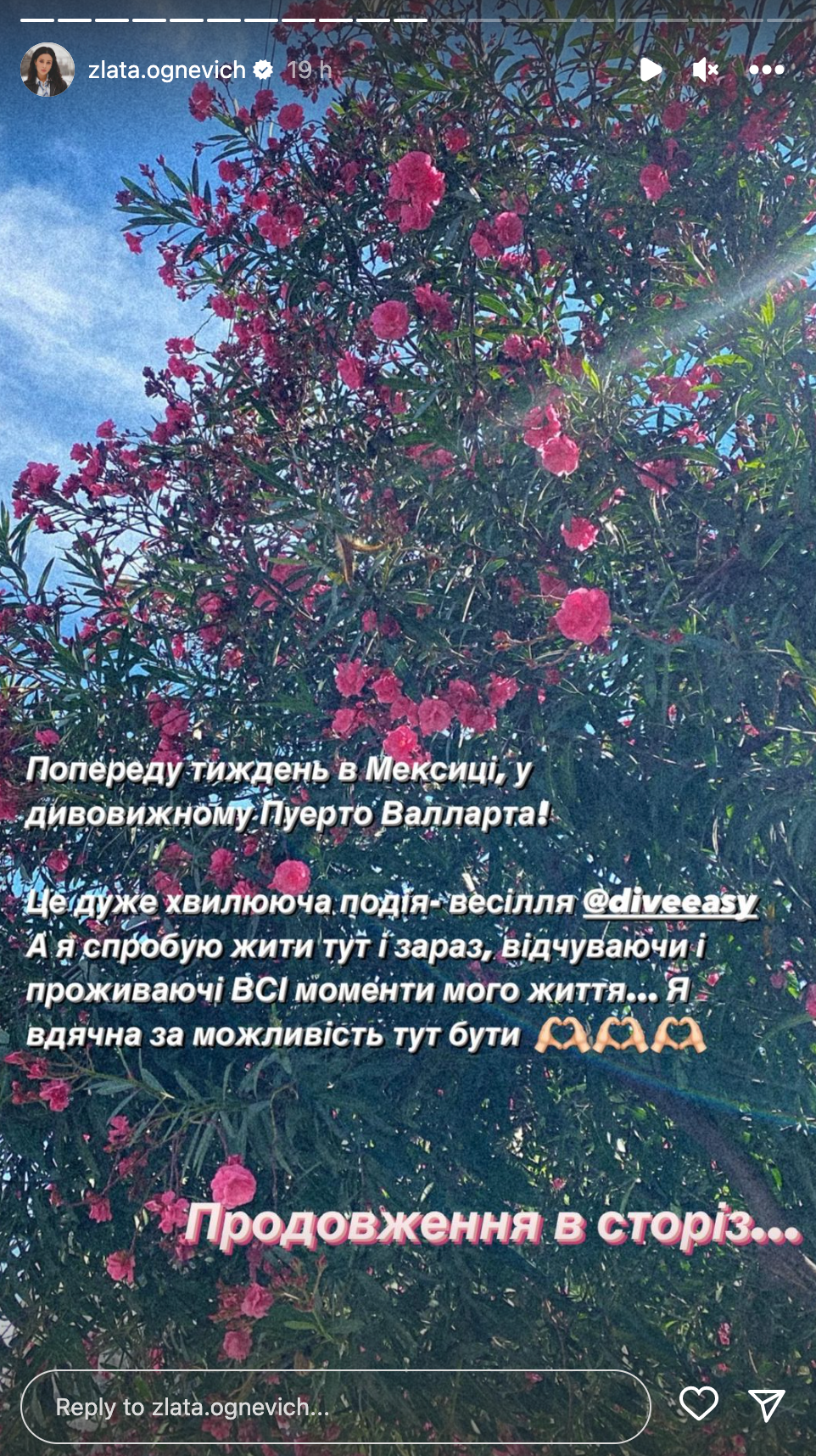 Злата Огневич уехала в Мексику на свадьбу / Фото с ее инстаграм-сторис