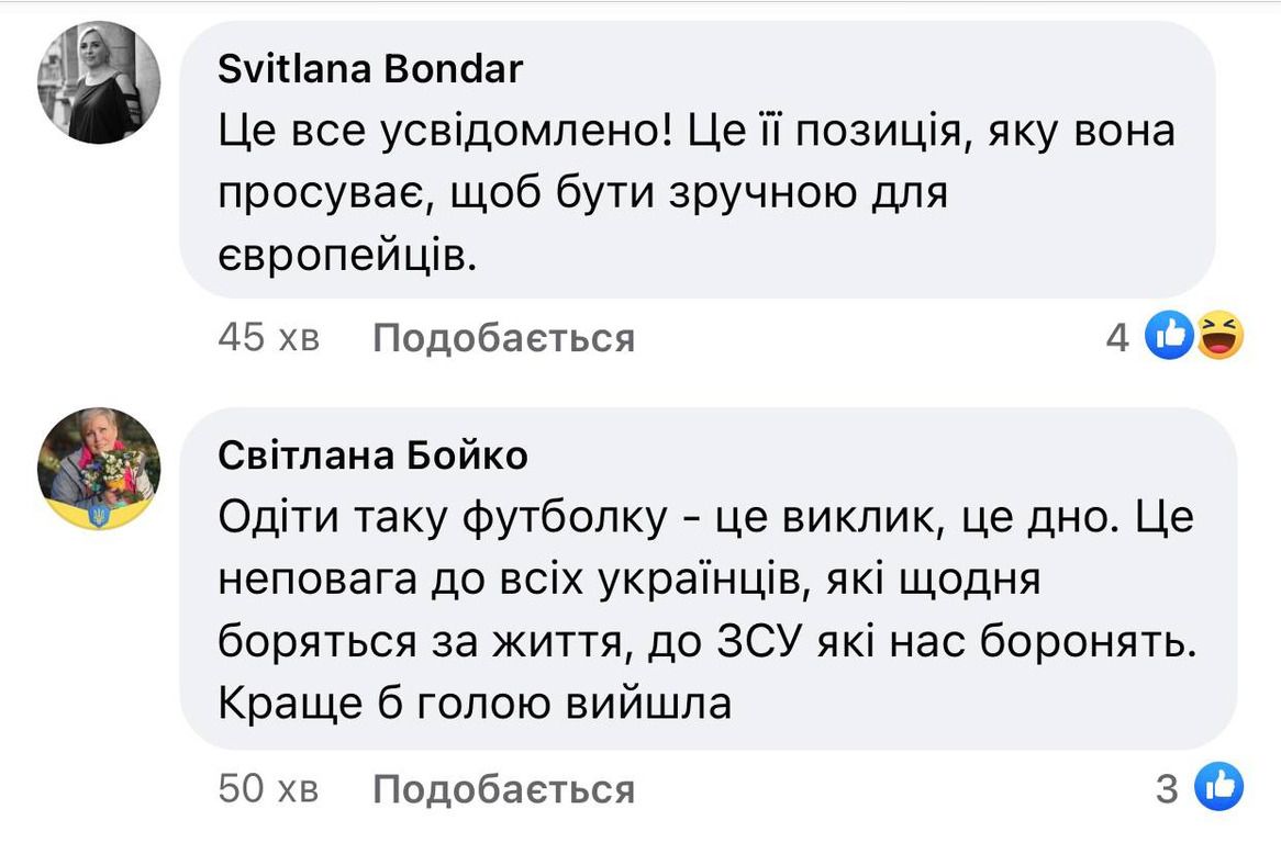 Оксана Линів могла б трошки подумати головою і не вдягати таку футболку. Щонайменше, можна було передбачити неоднозначну реакцію. Для цього великого розуму не треба,