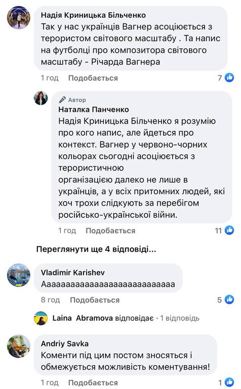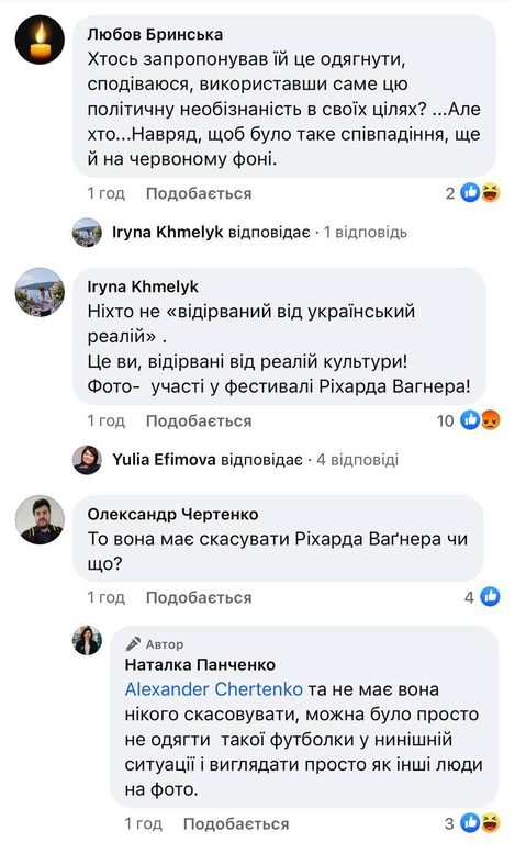 Найбільше Оксані закидають те, що вона не врахувала контекст. На жаль, зараз слово "Вагнер" асоціюється передусім із ПВК "Вагнера" і Євгеном Пригожиним, а не з епічними операми "Перстень Нібелунга", "Трістан та Ізольда" чи "Нюрнберзькі мейстерзінгери".