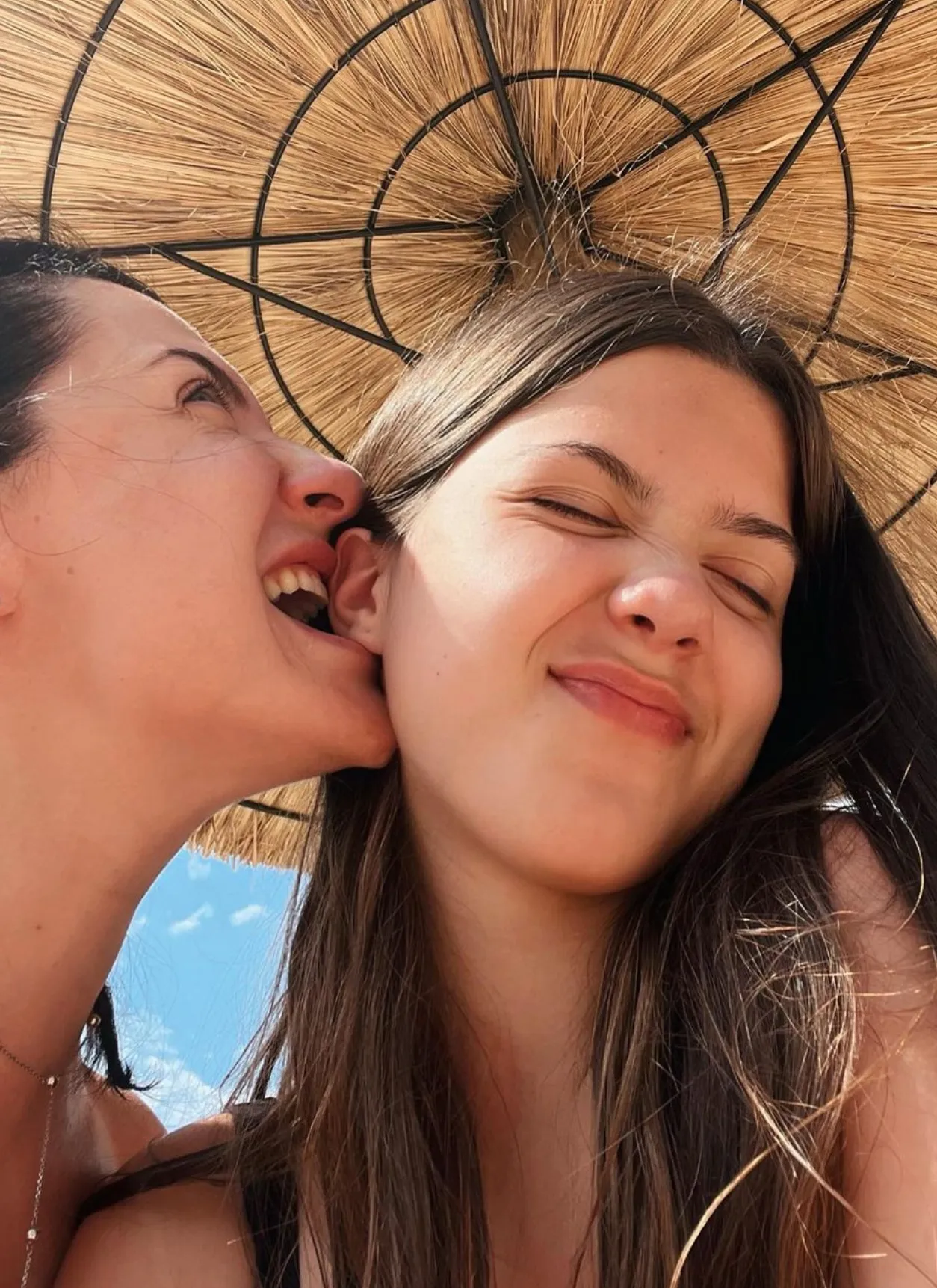 На іншому фото Сніжана жартома кусає за вушко дівчинку, поки та корчить гримасу. Судячи з кадрів, родина відпочиває на пляжі. У підписі до фото Бабкіна лише залишила два емоджі у вигляді мавп.