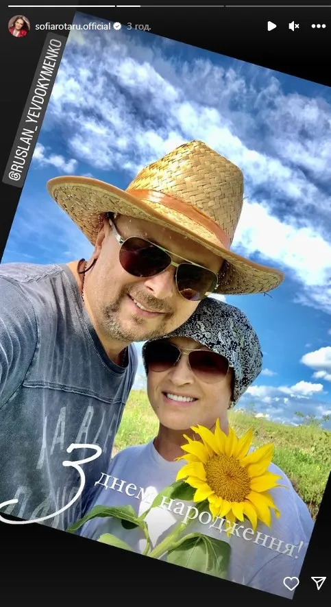 Софія Ротару поділилася з підписниками спільним фото з сином. На знімку співачка усміхалася та позувала в хустині та сонцезахисних окулярах. Водночас Руслан стояв у солом'яному капелюсі та синій футболкці.