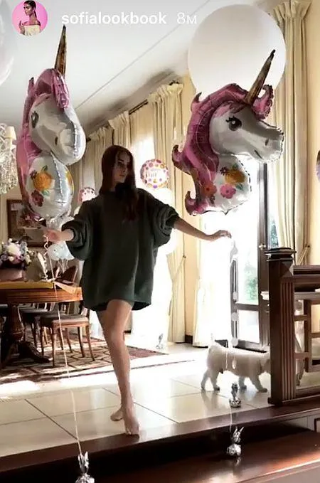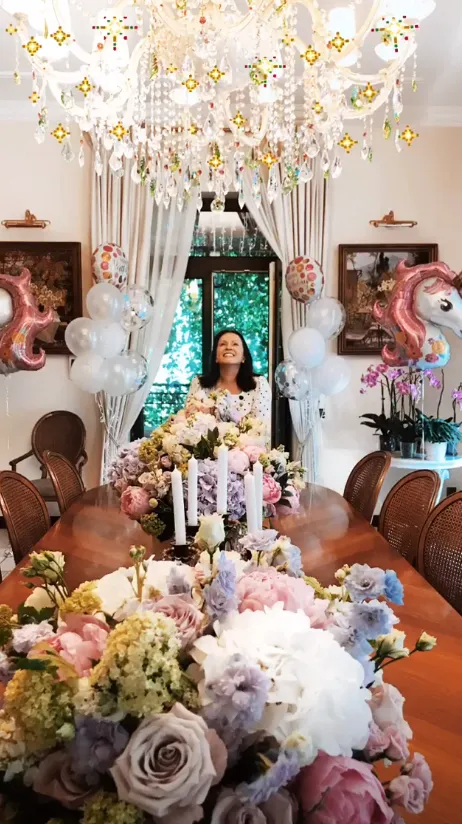 До такої події артистка обрала білу сукню у дрібний чорний горошок. Її рідні прикрасили будинок кульками у формі єдинорогі та квітами.