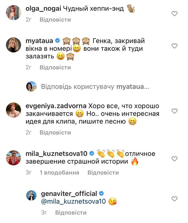 Коментарі під дописом Gena Viter / Скриншоти з інстаграму співака