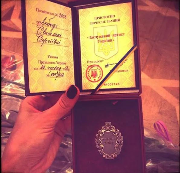 Нагадаємо, у червні, згідно з указом Президента Віктора Янукович, співачці Світлані Лободі присвоїли почесне звання Заслуженої артистки України.