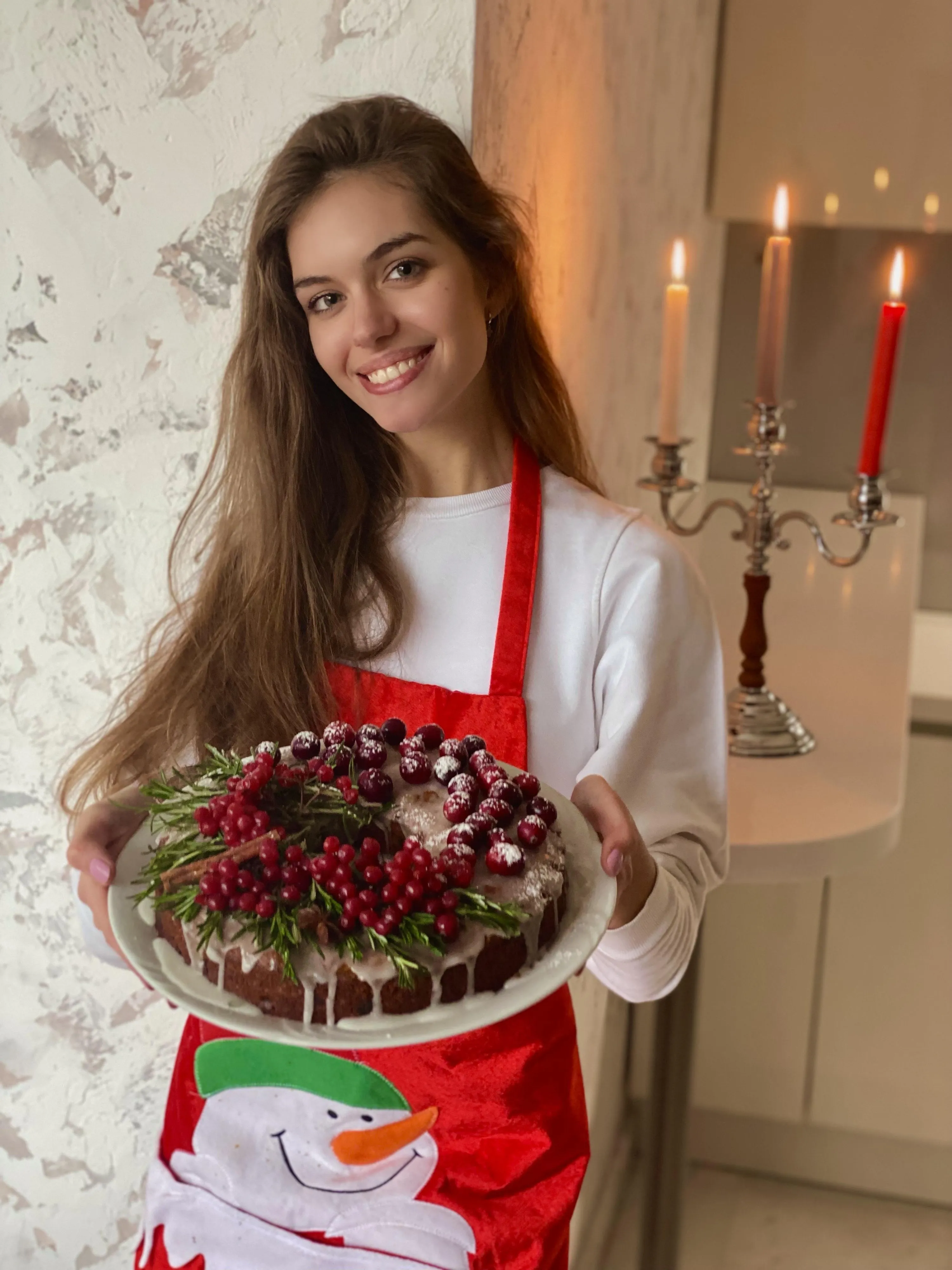 Олександра Кучеренко з пирогом "Різдвяний віночок" / Фото ведучої для 24 каналу