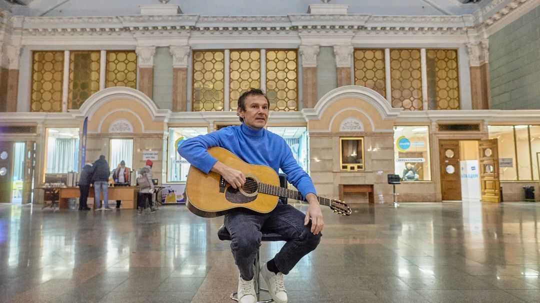 Музикант поділився, що Центральний залізничний вокзал у столиці став справжньою "фортецею незламності". Там люди зустрічаються, заряджають телефони та чекають на близьких.