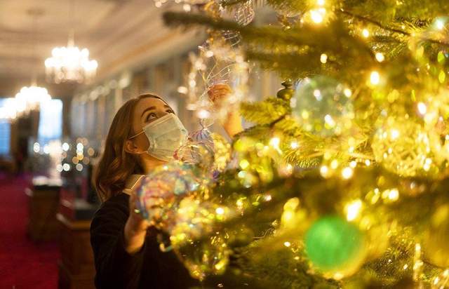 Домівка президентського подружжя США вже сяє новорічними вогнями. У просторих залах стоїть понад десяток ялинок, прикрашених не тільки звичними іграшками, але й символічними голубами та фотографіями.
