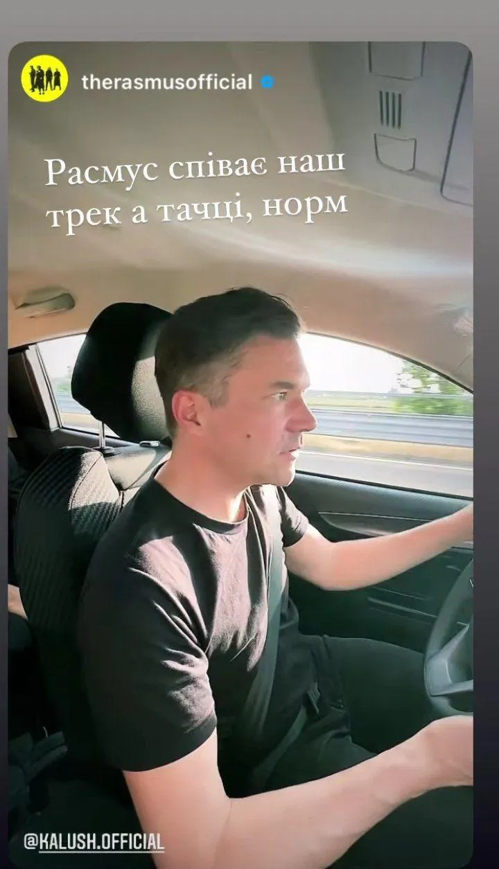 На це встигли відреагували Kalush Orchestra. Вони поширили собі цей ролик підписавши його: "Расмус співає наш трек у тачці. Норм".