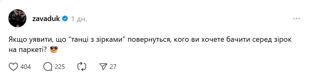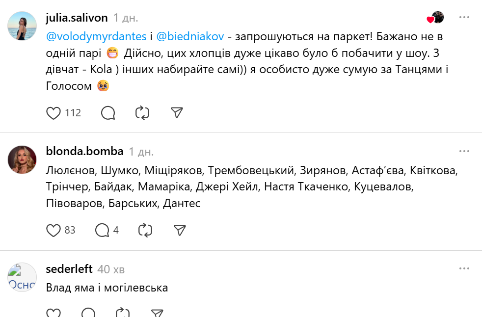 Українці поділилися, кого б хотіли бачити серед учасників "Танців з зірками" / Скриншот з Threads
