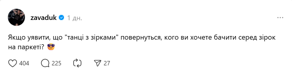Українці поділилися, кого б хотіли бачити серед учасників "Танців з зірками" / Скриншот з Threads