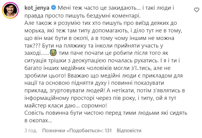 – написав Євген Кот у коментарях.