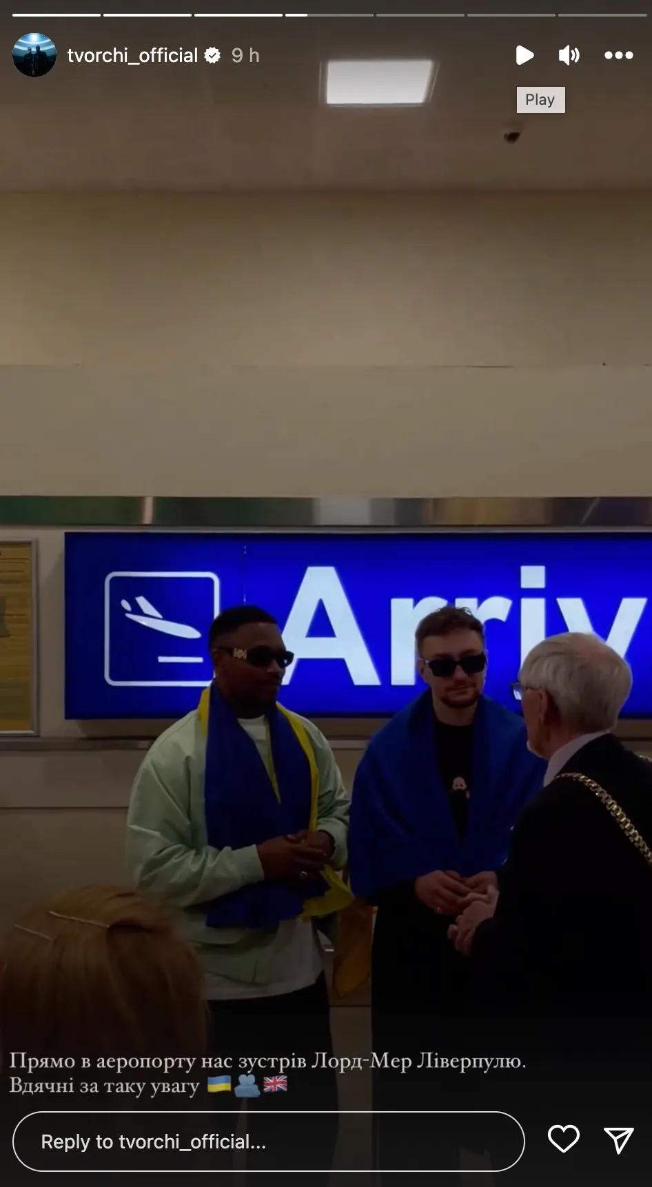 В Інстаграм-сторіс "Творчі" поділилися першими відео, як їх зустріли в Ліверпулі. Тепер їх чекає тиждень підготовки до Євробачення-2023.