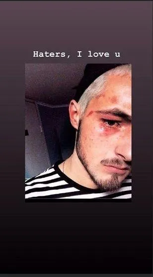 Український виконавець залишив у соціальній мережі в Instagram-Stories фото, на якому він зображений з побитим обличчям. За його словами, після одного інтерв'ю він відправлявся з напарниками на акустичний концерт. Але у вагоні київського метро на нього напали троє невідомих, які схожі на тих, хто "нещодавно вийшов з місць позбавлення волі".
