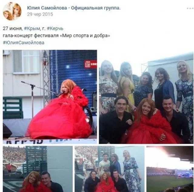 Також, за даними Служби Безпеки України вона брала участь у Гала-концерті фестивалю "Мир спорта и добра". Концерт відбувся на той час вже в анексованому Криму в місті Керч, що ставить взагалі під сумнів її перебування та участь в конкурсі в Україні.