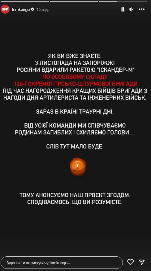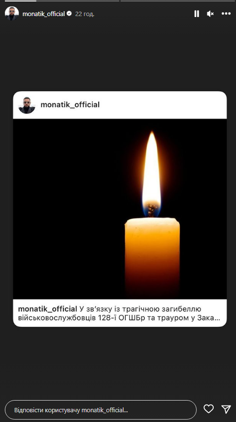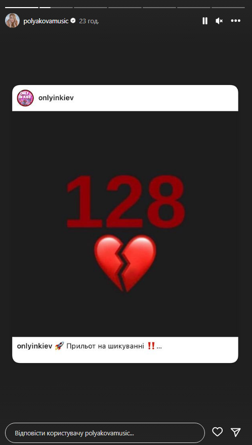 ONUKA відреагувала на обстріл 128 бригади / Скриншот з інстаграм-сторіс