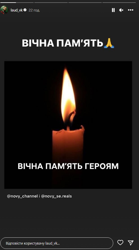 "Вічна пам'ять героям. Болить ще за те, що хтось навів", – поділилася знаменитість.