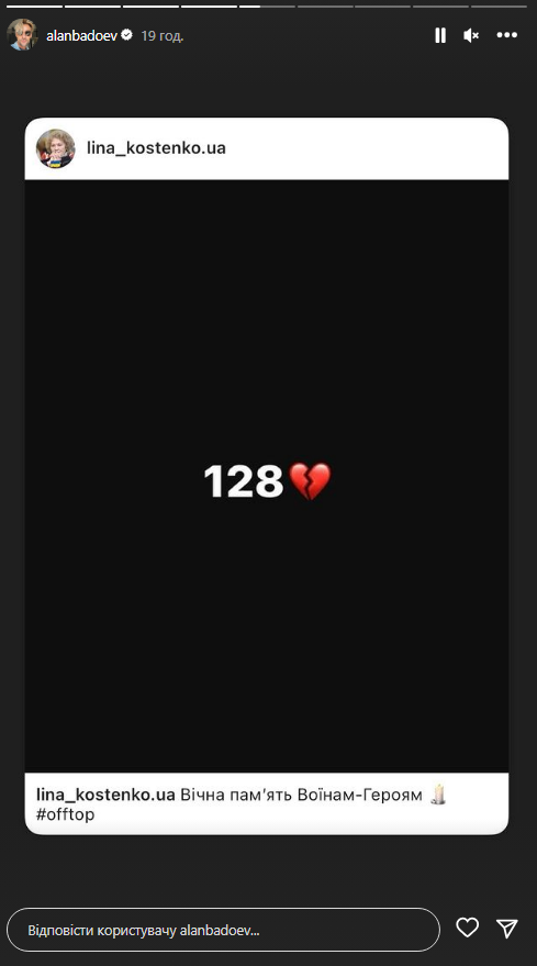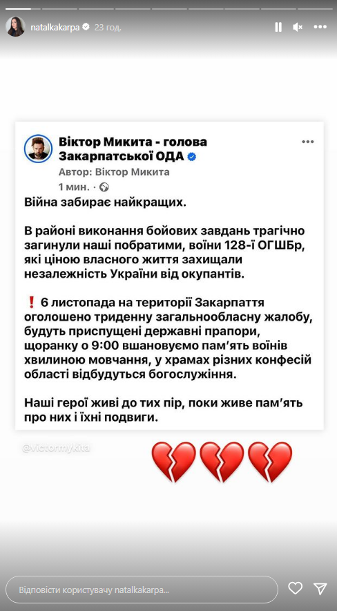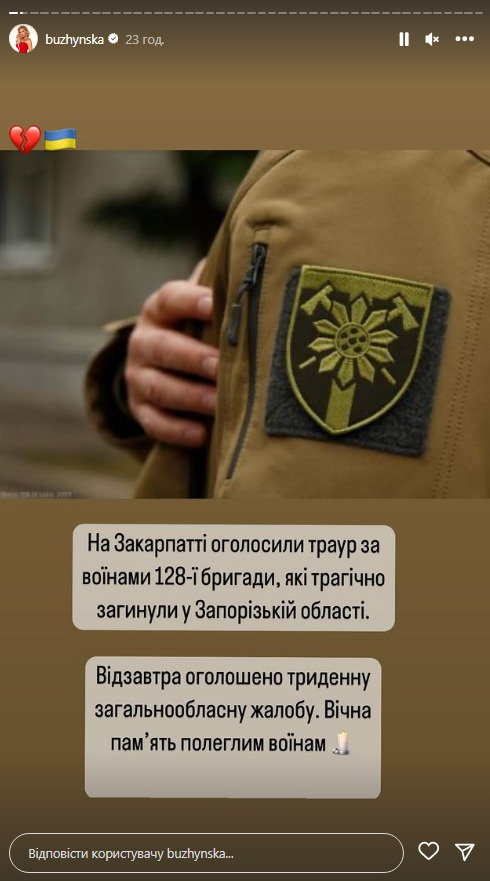 Як українські знаменитості відреагували на обстріл 128 бригади / Скриншоти з інстаграм-сторіс