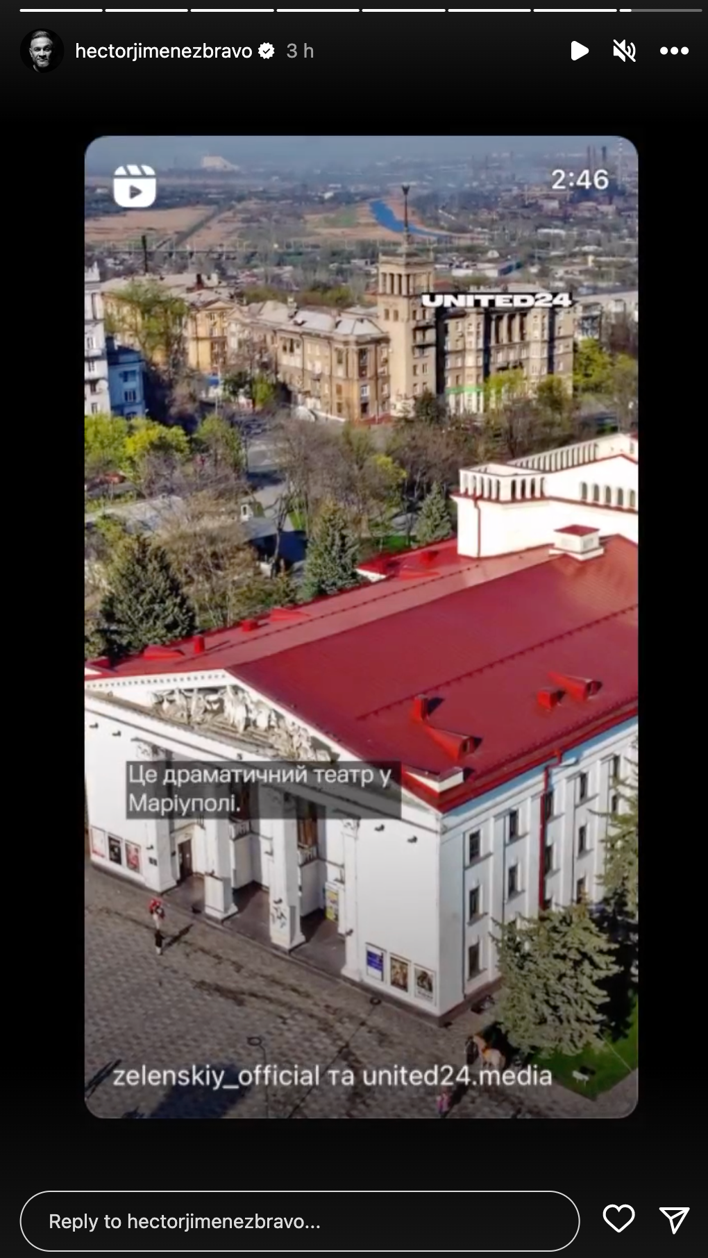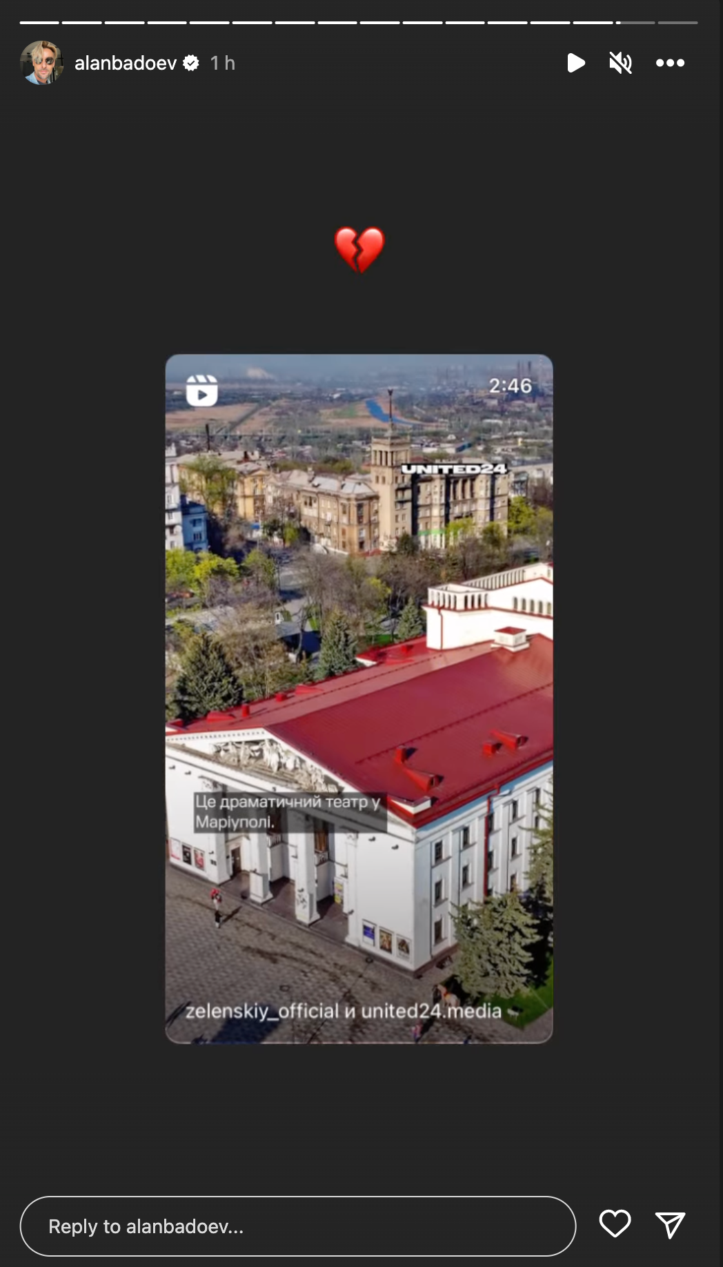 Григорій Решетник пригадав удар по драмтетрау Маріуполя / Скриншот з його інстаграму