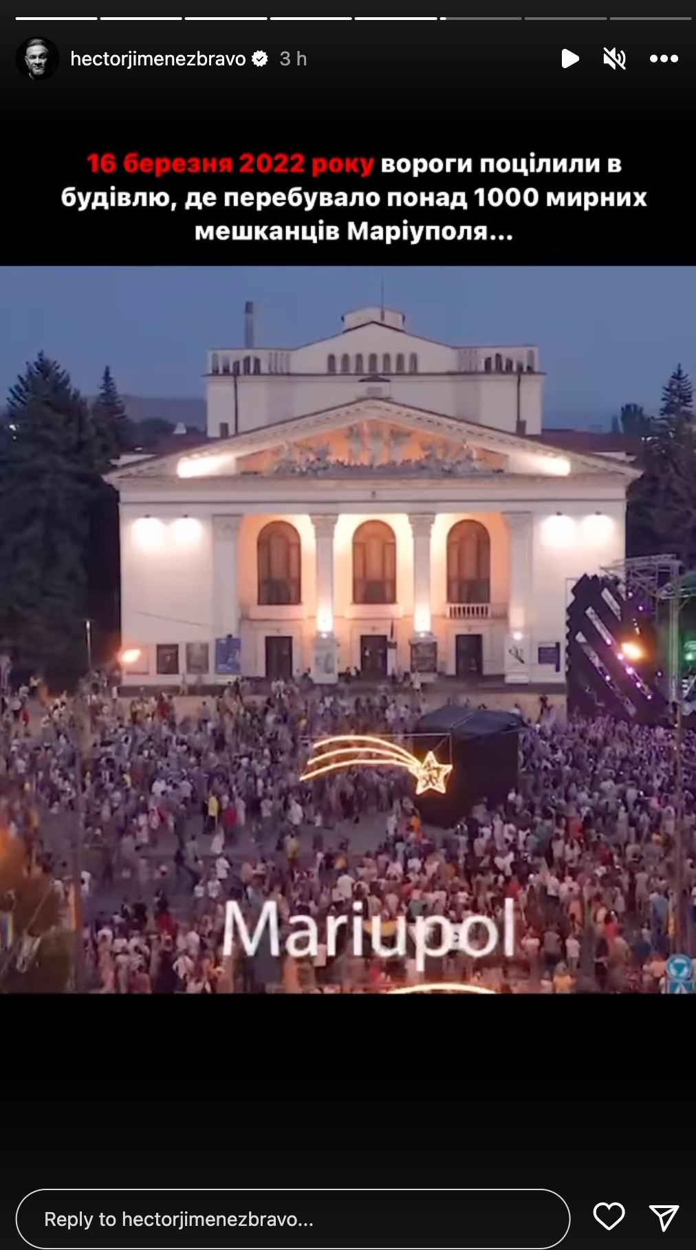 Зірковий ведучий також пригадав ті страшні події. Спочатку у сторіс він перепости свою сторіс минулого року щодо трагедії у Маріуполі. Згодом Григорій показав відео з площі біля драмтеатру до війни, там були десятки людей.