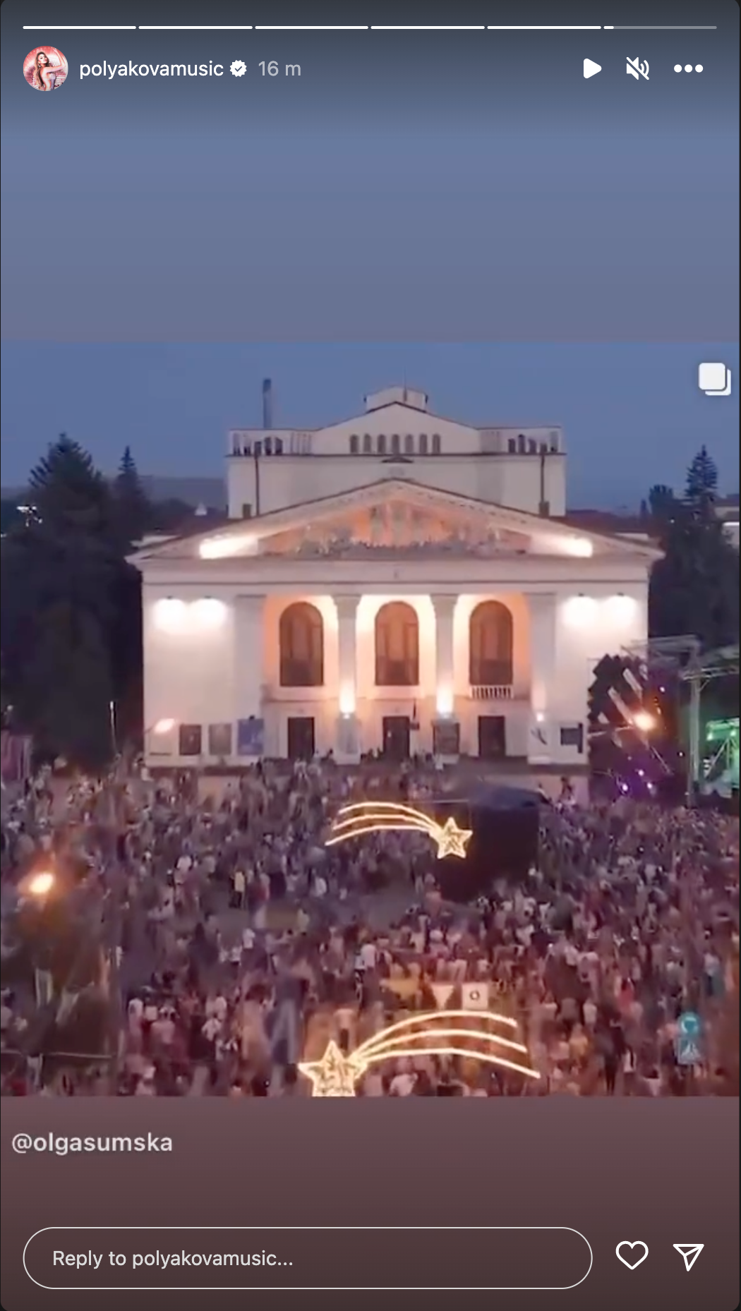 Вона зазначила, що внаслідок авіаудару під завалами театру загинули люди, серед яких – діти. "Світла пам’ять загиблим", – додала артистка та оприлюднила відео, у яких є кадри з того страшного дня. У сторіс Ольга Сумська також перпостила кілька роликів.