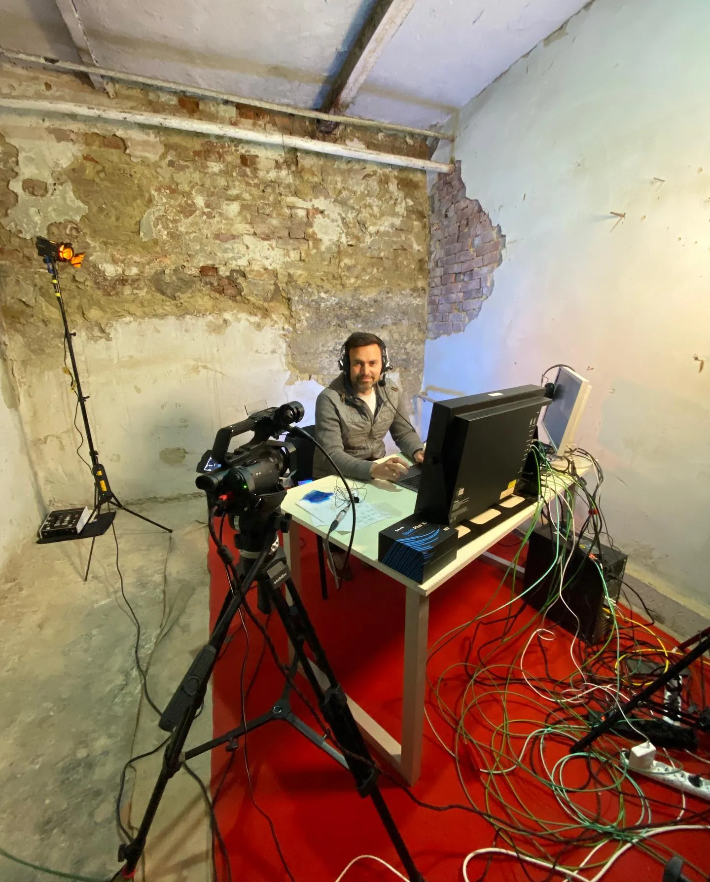 Український телеведучий та коментатор цьогорічного Євробачення показав своє "робоче місце". Це вперше в історії Євробачення коментатор працює в бомбосховищі. Повітряна тривога може застати Тимура Мірошніченка зненацька, тому задля безпеки, всю техніку та апаратуру обладнали в укритті.